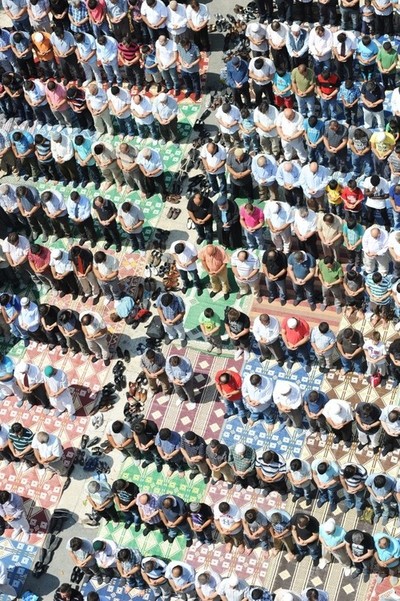 Muslims performing eid prayers in mosque on the first day of Ramadan holiday. (Photo by Murat Şengül)