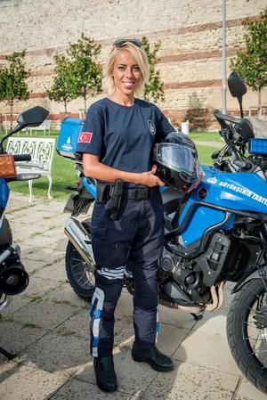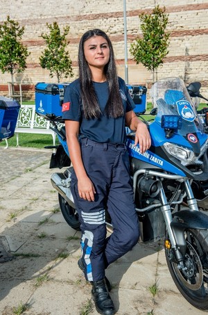 Meral Nilüfer Güneş has served as a female municipal police officer for three years. Although she has a degree in management, Güneşpreferred serving in the municipal police to any other job. When she first started, street traders and drivers who came across the uniformed troops on motorcycles hesitated, unsure if these were policewomen they were seeing on motorcycles. "People who see us in traffic get surprised. There are even some who want to take photos with us. Street traders, on the other hand, are really shocked upon realizing that we are women when we take our helmets off. They even try to escape after getting over their surprise," Güneş said.