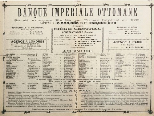 With British capital, Bank-ı Osmani (Ottoman Bank), whose headquarters were in London, was founded with in 1856. With the participation of French capital in 1863, the bank continued with the name Bank-ı Osmani-i Şahane both as a central bank and a facility for business and investment. In 1877, the government borrowed from the moneychangers in Galata and the Ottoman Bank for the 1877-78 Russo-Turkish War.
