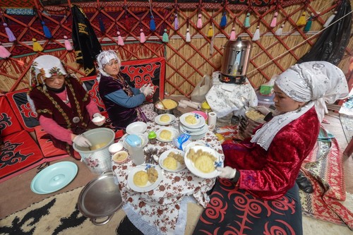 Kyrgyz women cook traditional meals for tourists and locals who wants a taste of Kyrgyz cuisine.