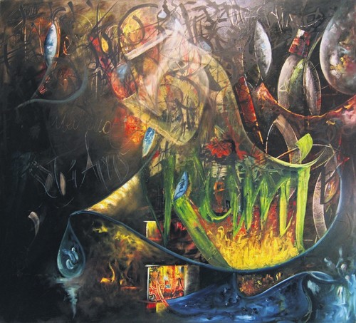 "I do not make any concessions. There's what we see and what's beyond. It is the person inside those clothes that matters. It's also what you call perception, but truth is the essence you do not see. Avicenna said: 'Those who do not break the walnut and see what is inside think it is all a crust.' They may look contradictory at first, but the important thing is to read correctly. For this reason, things that seem to be opposite have accumulated a lot of things in me, and the ordeal makes a man produce. In my paintings, there is philosophy, writing, images, poems or words. So they have a claim. These things happen while you read and think," Sula said.