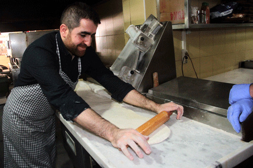 Similar to pizza, lahmacun is a round, thin piece of dough topped with minced meat (most commonly beef or lamb), minced vegetables and herbs–including onions, tomatoes and parsley, and spices such as cayenne pepper, paprika, cumin and cinnamon—and then baked in natural wood-fired ovens.