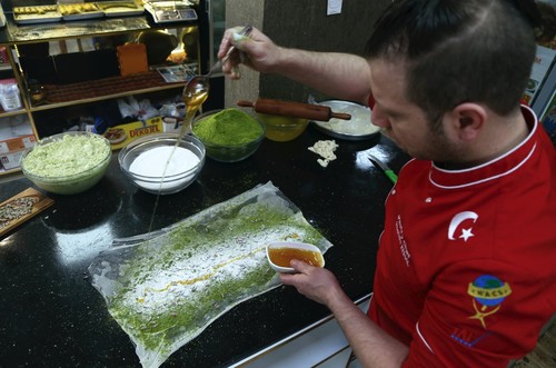 Enhanced with a special cream, pistachio, peanut butter and honey, the new taste was named by Erhoylu for its explosive taste. Gaining fame rather quickly in Konya with his new dessert, these days, Erhoylu is struggling to meet the demand from dessert lovers.