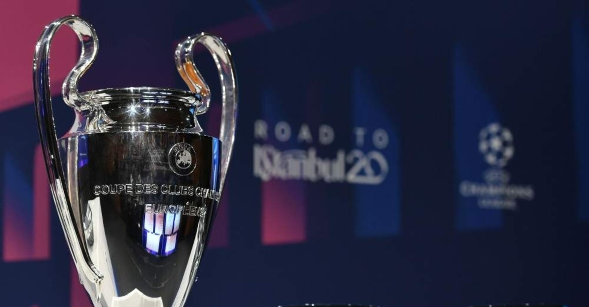 The UEFA Champions League football trophy is pictured prior to the round of 16 draw ceremony in Nyon, Switzerland, Dec. 16, 2019. (AFP Photo)