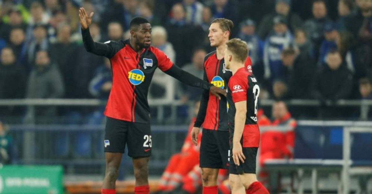 The 22-year-old Torunarigha was sent off during extra time of his club's German Cup defeat by Schalke on Feb. 4 after allegedly hearing monkey chants and other racist abuse in Gelsenkirchen.