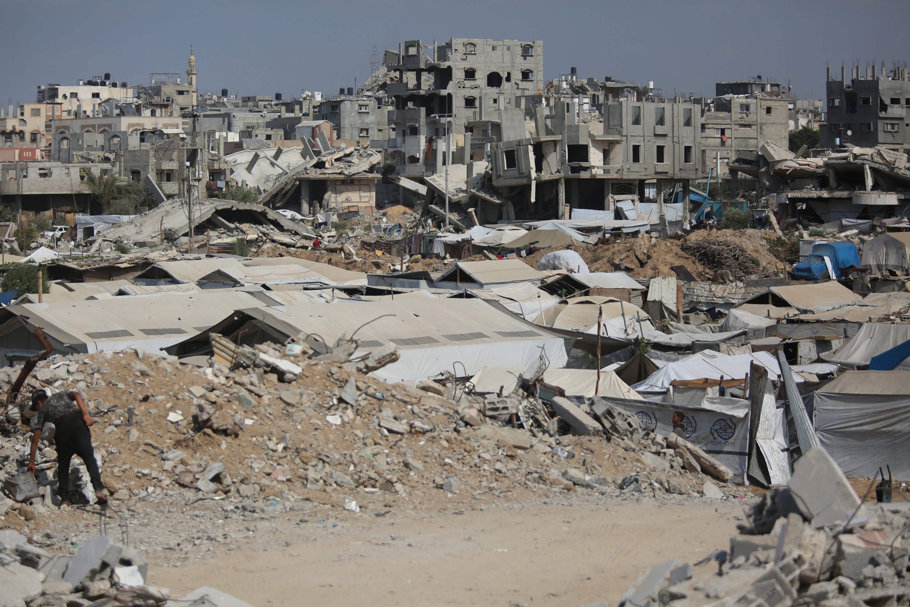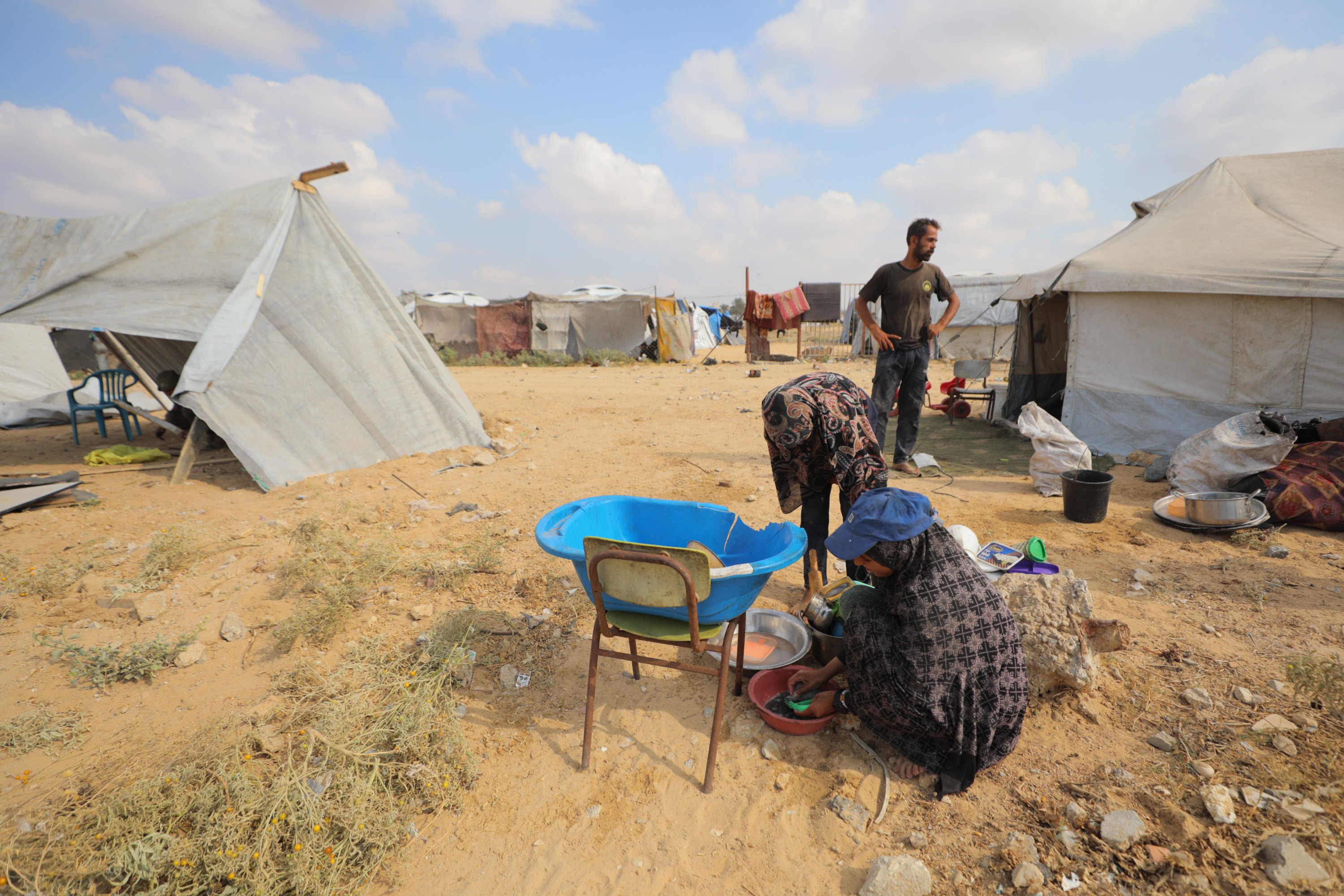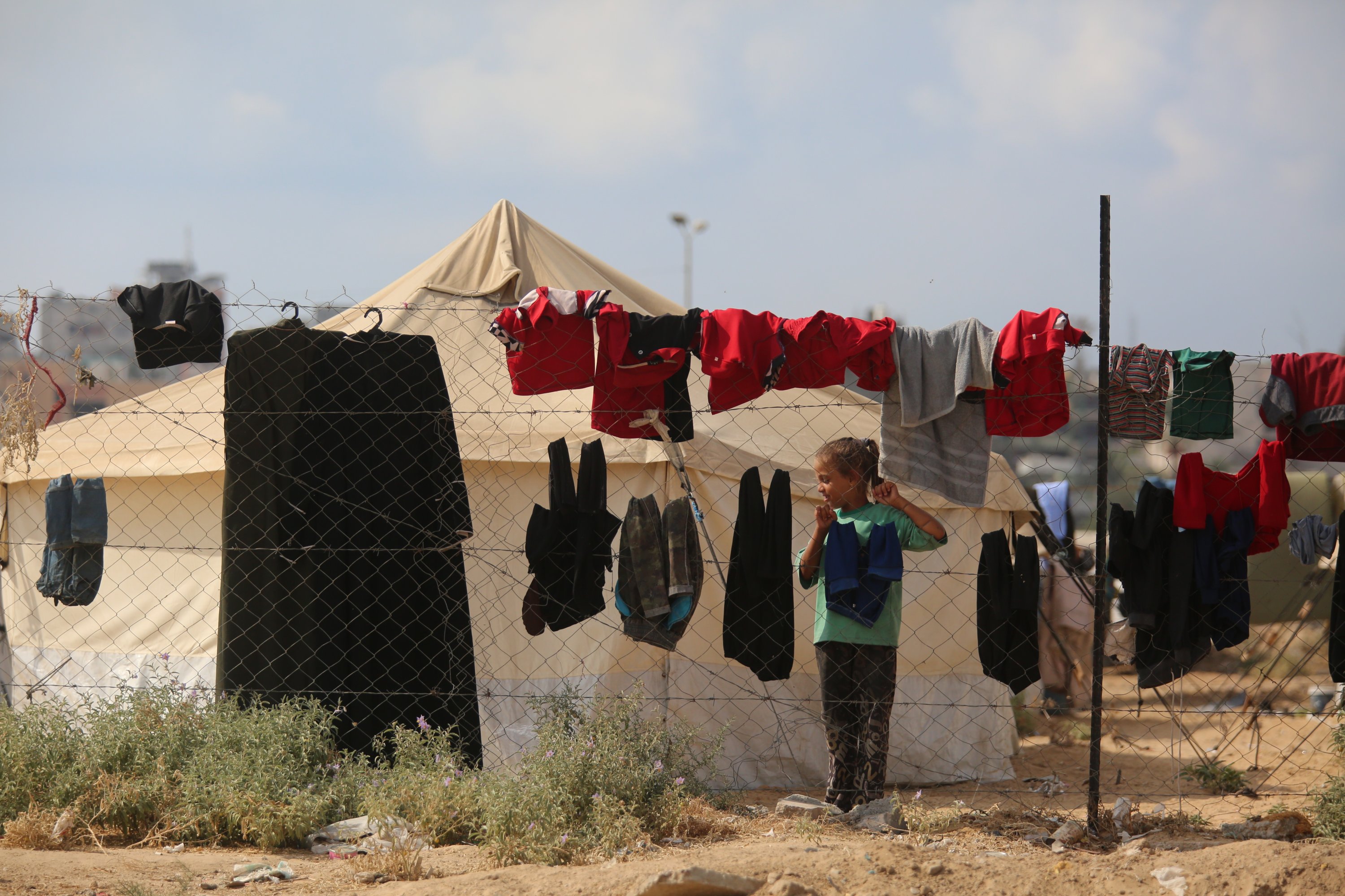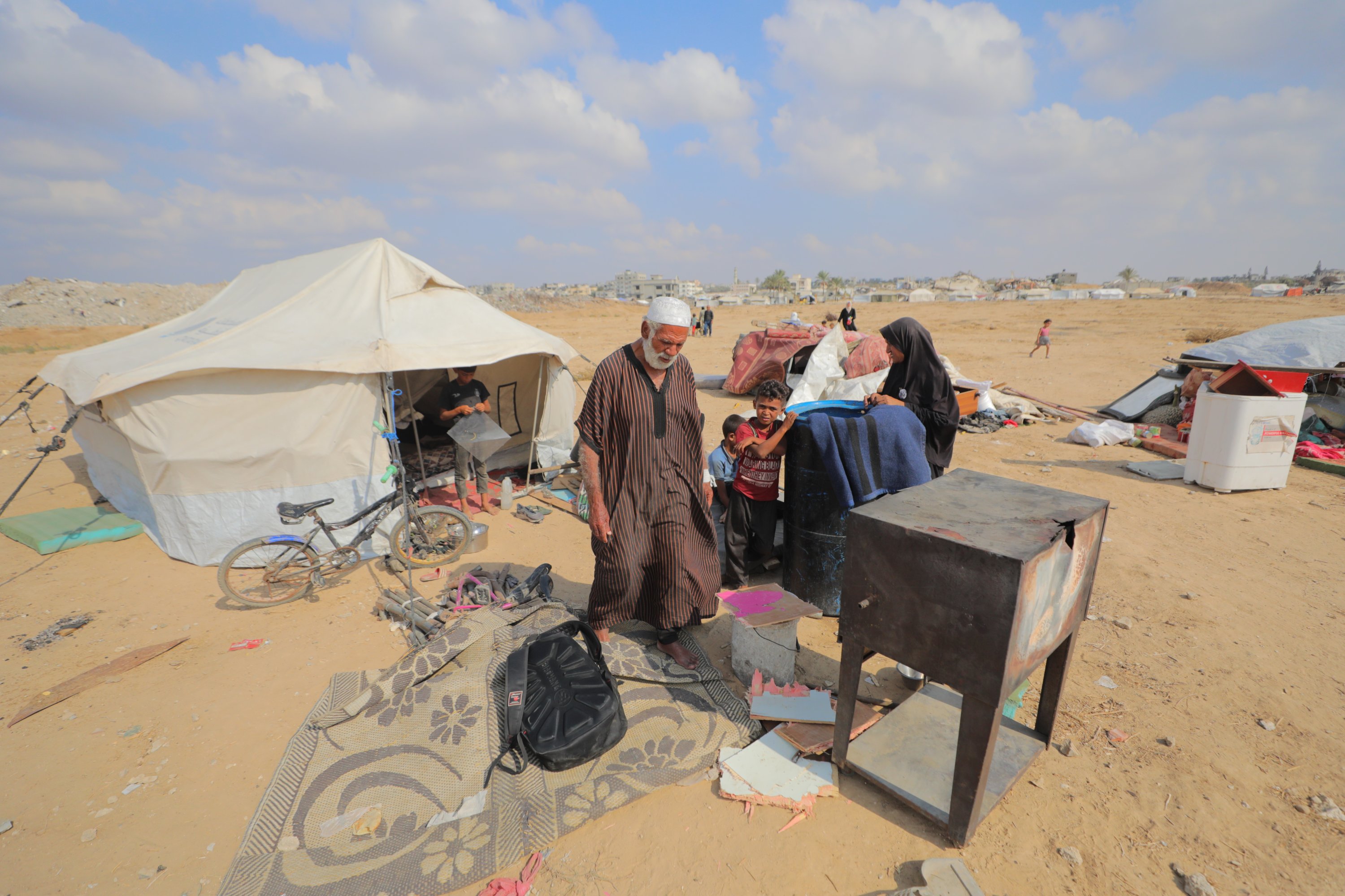 Families search for space among piles of tents in the Bureij camp to shelter as Palestinians displaced due to intense Israeli attacks struggle to survive with limited resources in Gaza City, Gaza, Palestine, Sept. 25, 2025.