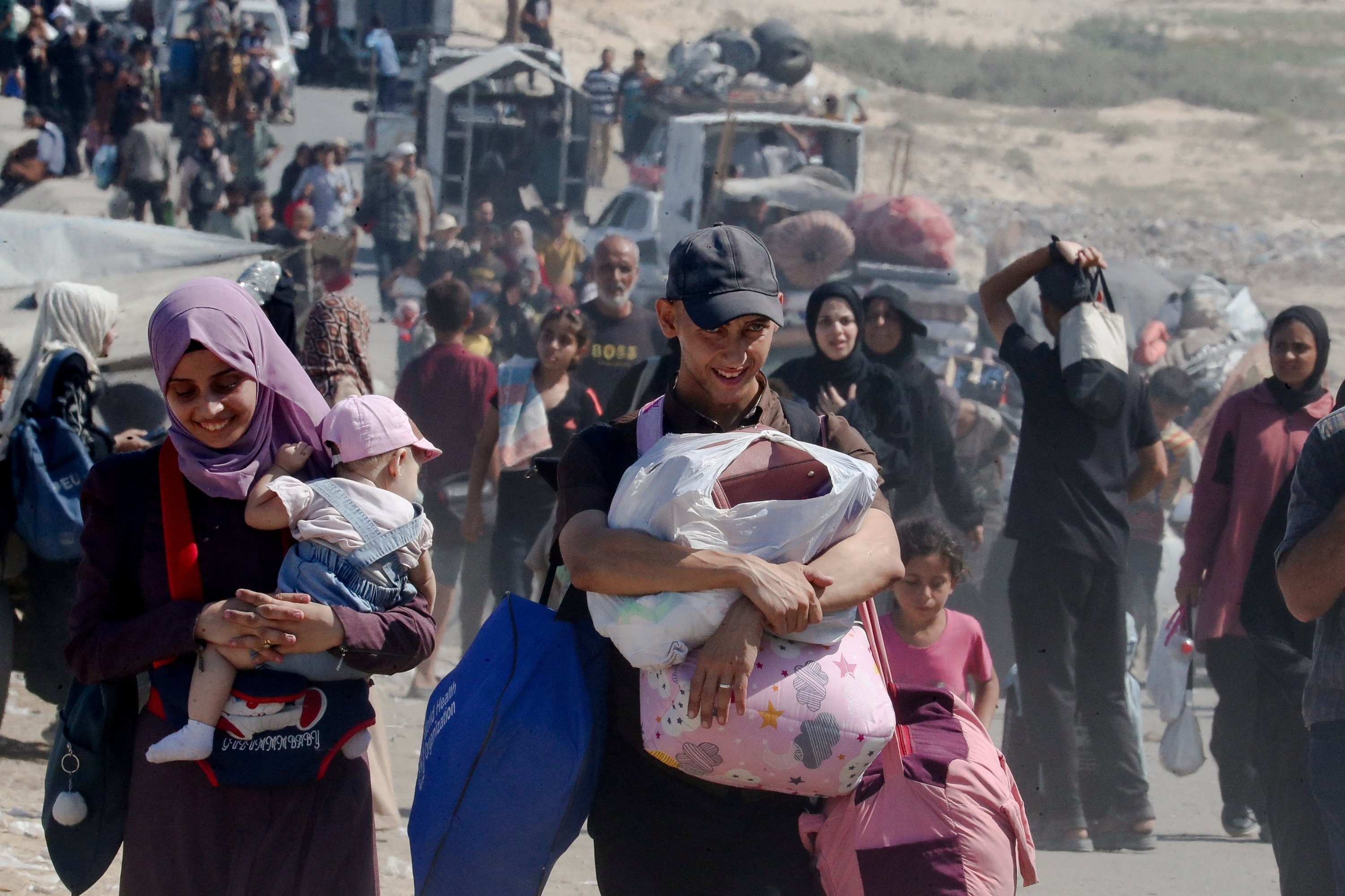 Displaced Palestinians, fleeing northern Gaza due to an Israeli military operation, move southward after Israeli forces ordered residents of Gaza City to evacuate to the south, in the central Gaza Strip, Palestine, Sept. 15, 2025.