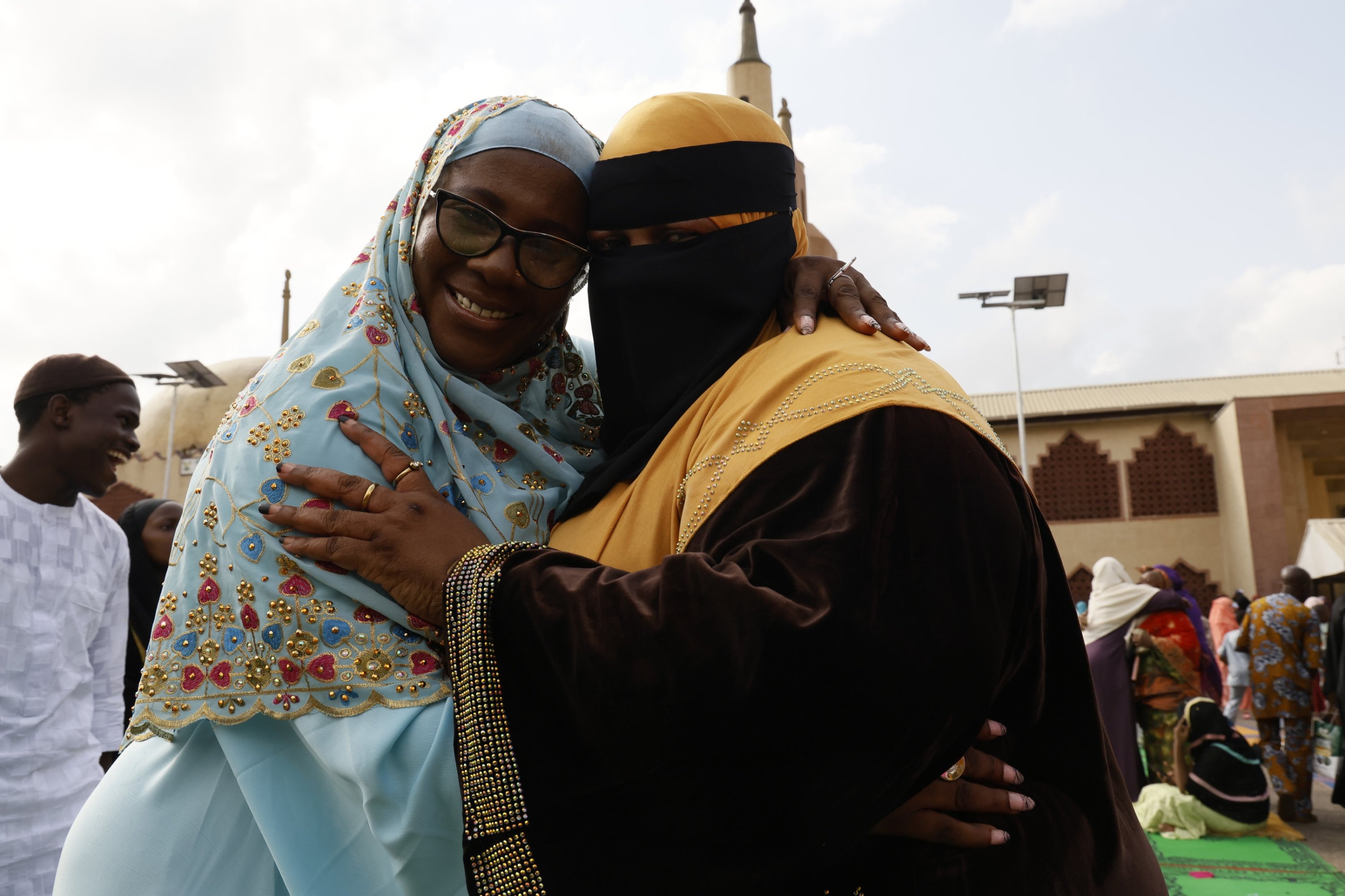 Women celebrate Eid after prayers at the Central Mosque of the Muslim Community, Lagos, Nigeria, March 20, 2026.