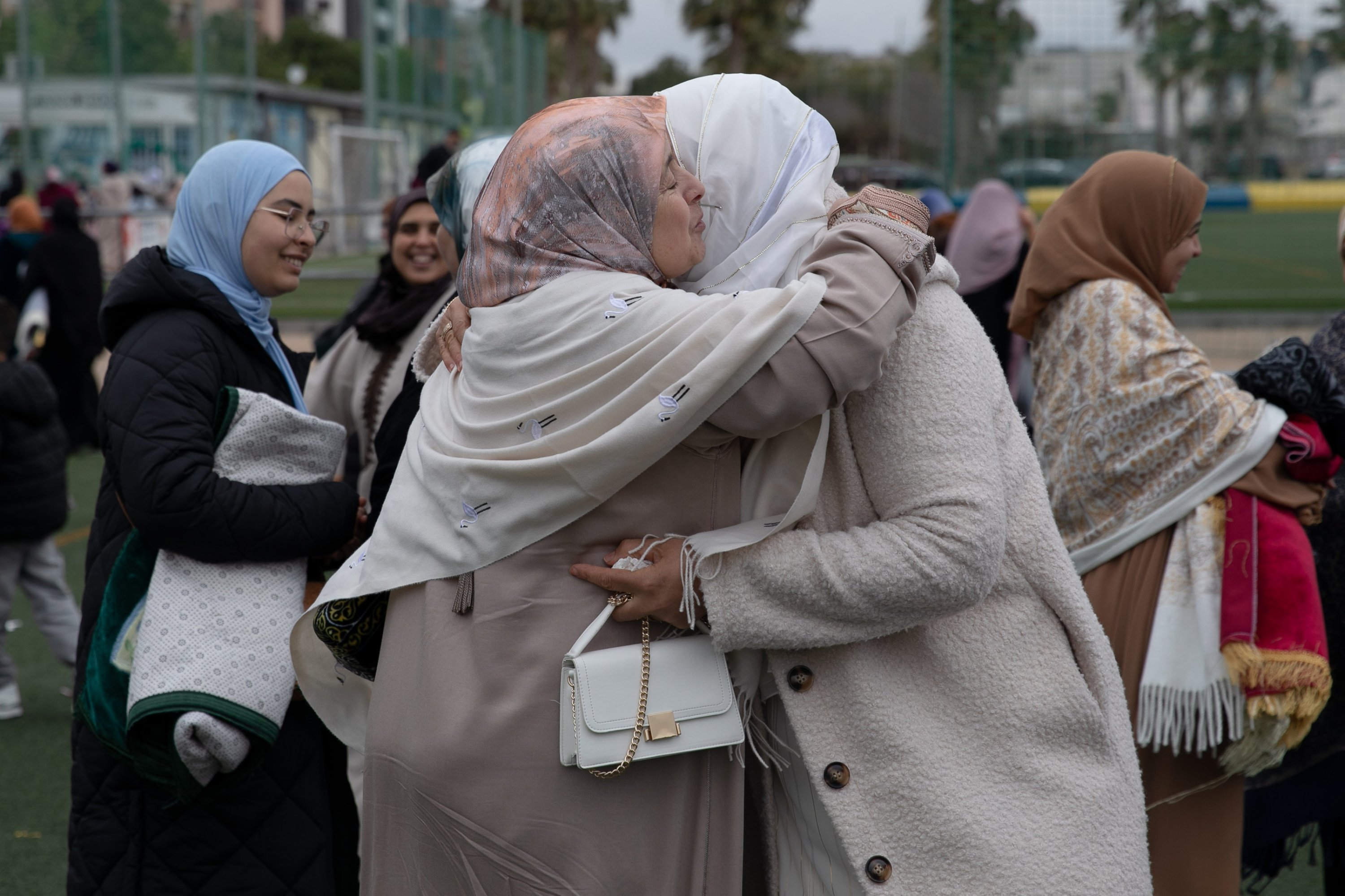 Muslims greet each other during Eid al-Fitr celebrations, Cartagena, Spain, March 20, 2026.