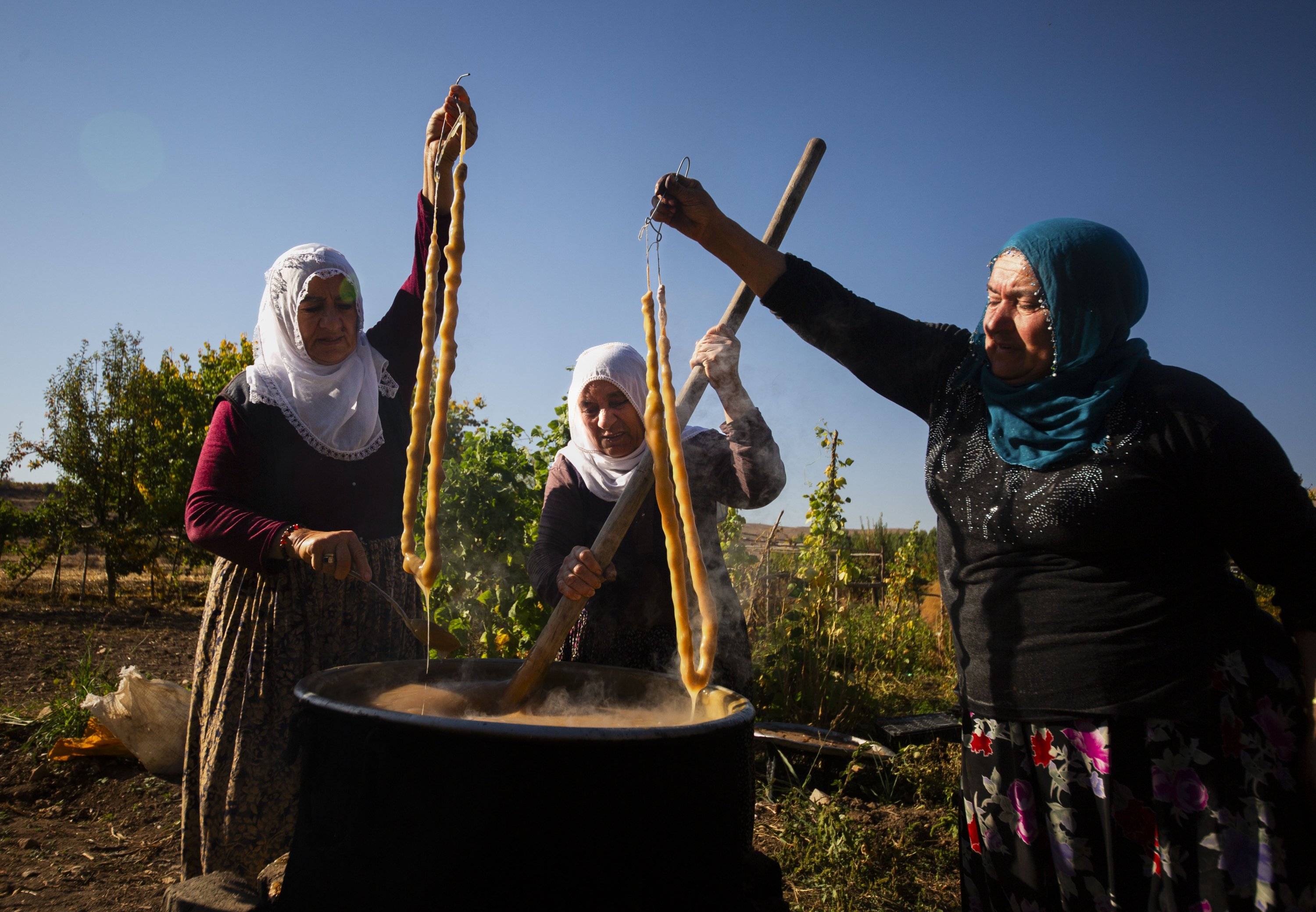 Residents of Savur in Türkiye’s Mardin province began the grape harvest season, producing molasses, fruit leather and nut-filled sweets through traditional methods passed down for generations.