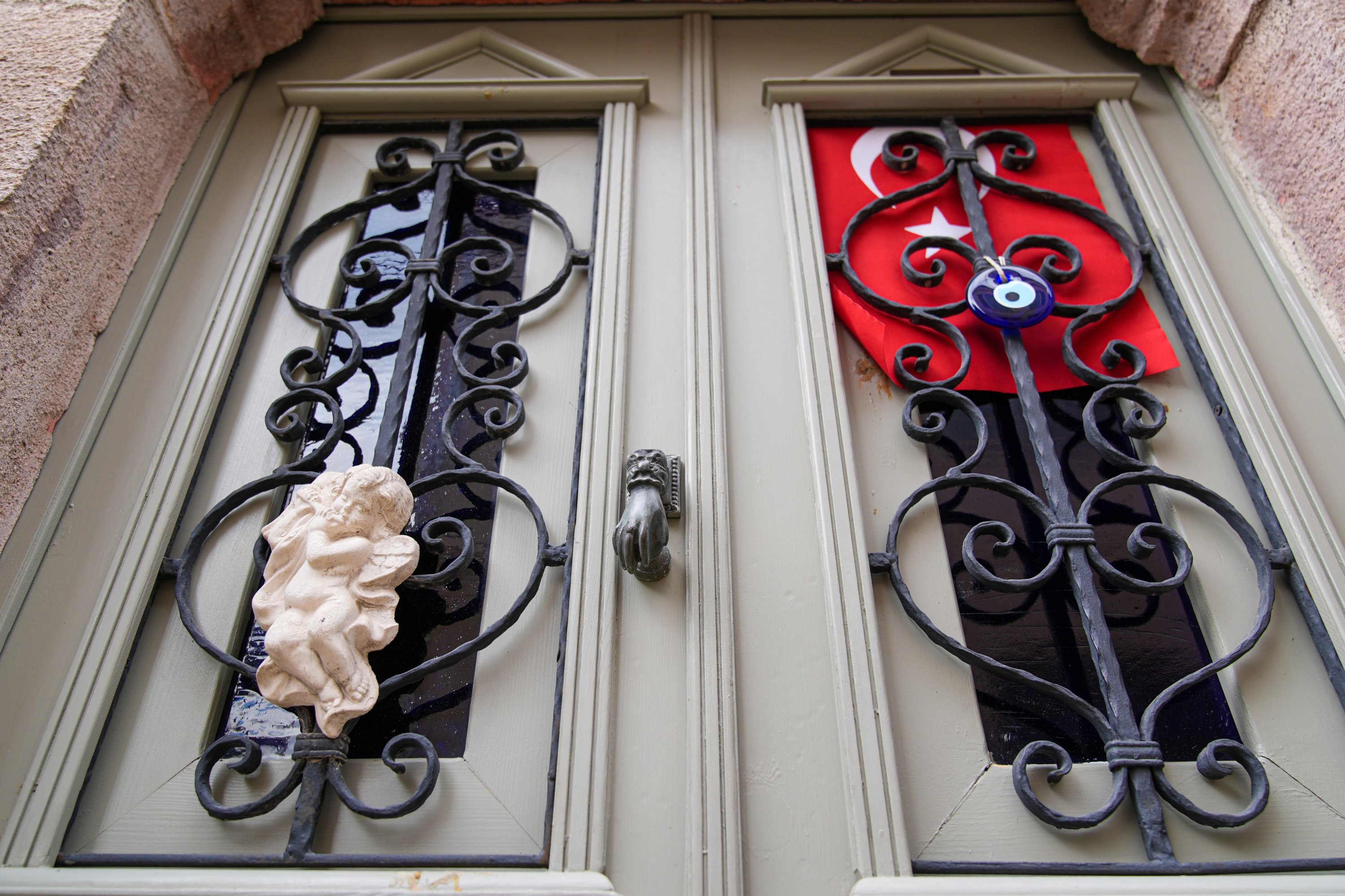 Colorful, intricately crafted doors of historic houses line the narrow streets of Cunda Island, reflecting the island’s rich cultural heritage and drawing visitors to one of the northern Aegean’s popular tourism destinations, Balıkesir, Türkiye, March 24, 2026.