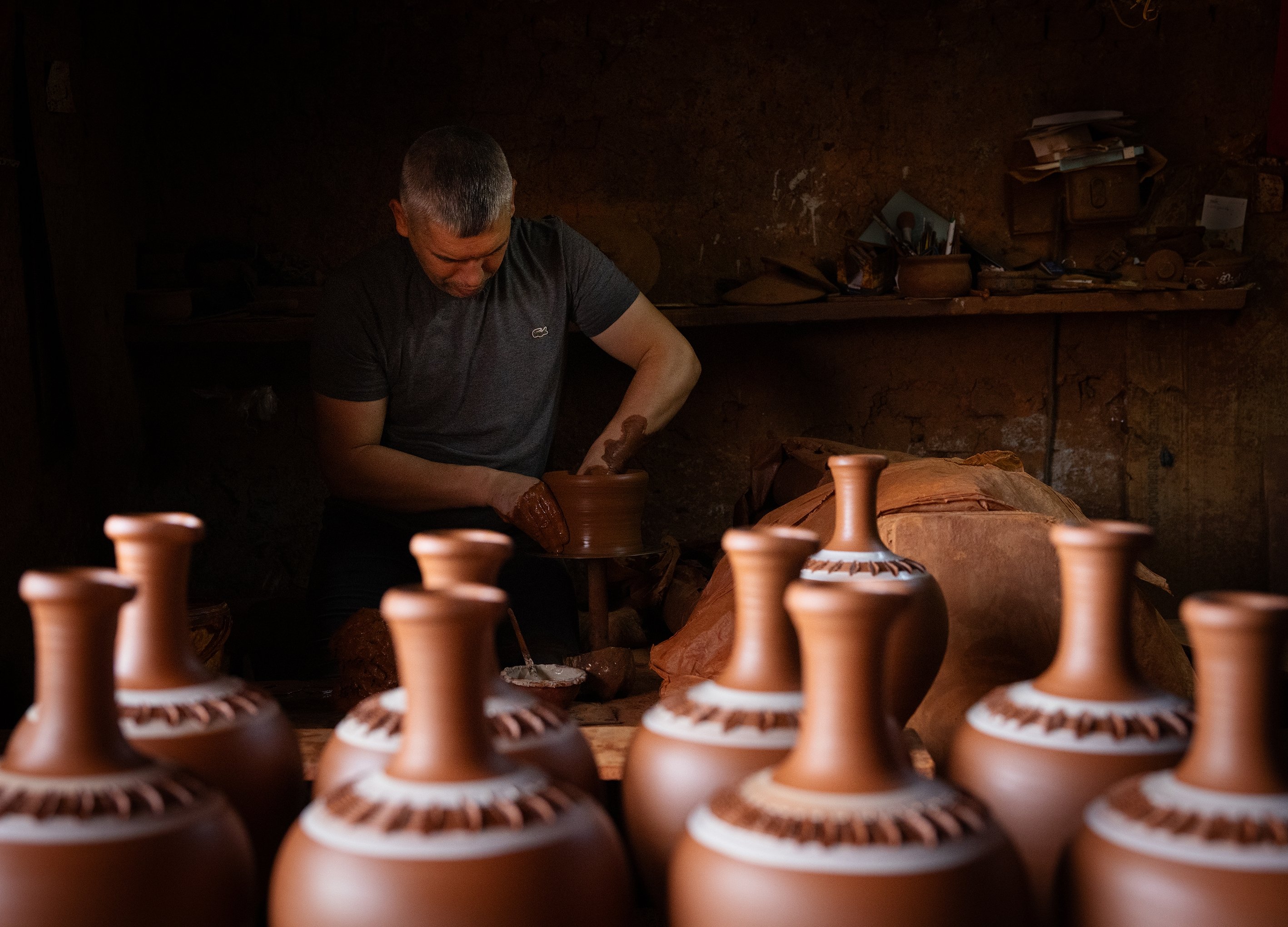 ln the town of Karacasu in western Türkiye, artisans keep alive a centuries-old pottery tradition, shaping the region’s red clay into vessels that are still crafted and fired in historic workshops along the famed Testiciler Street.