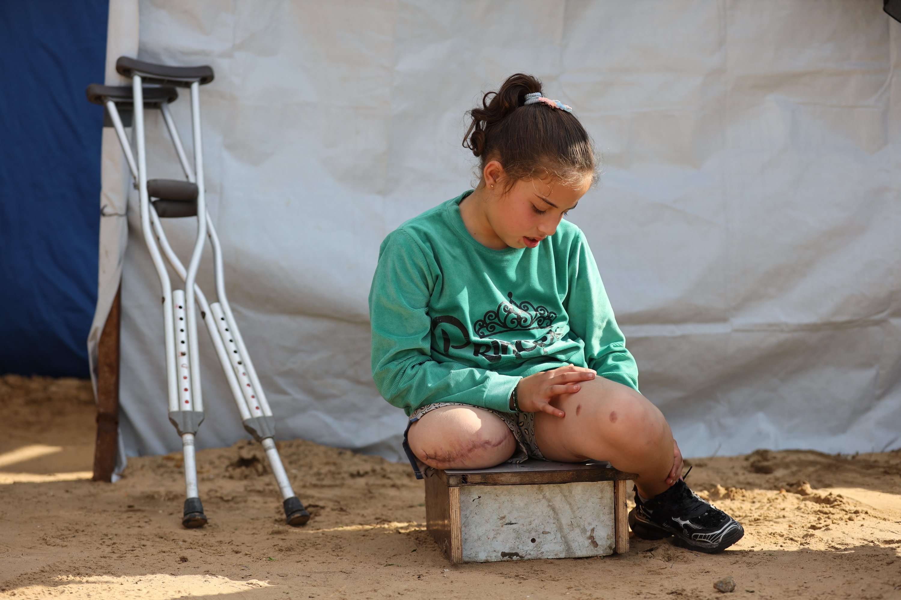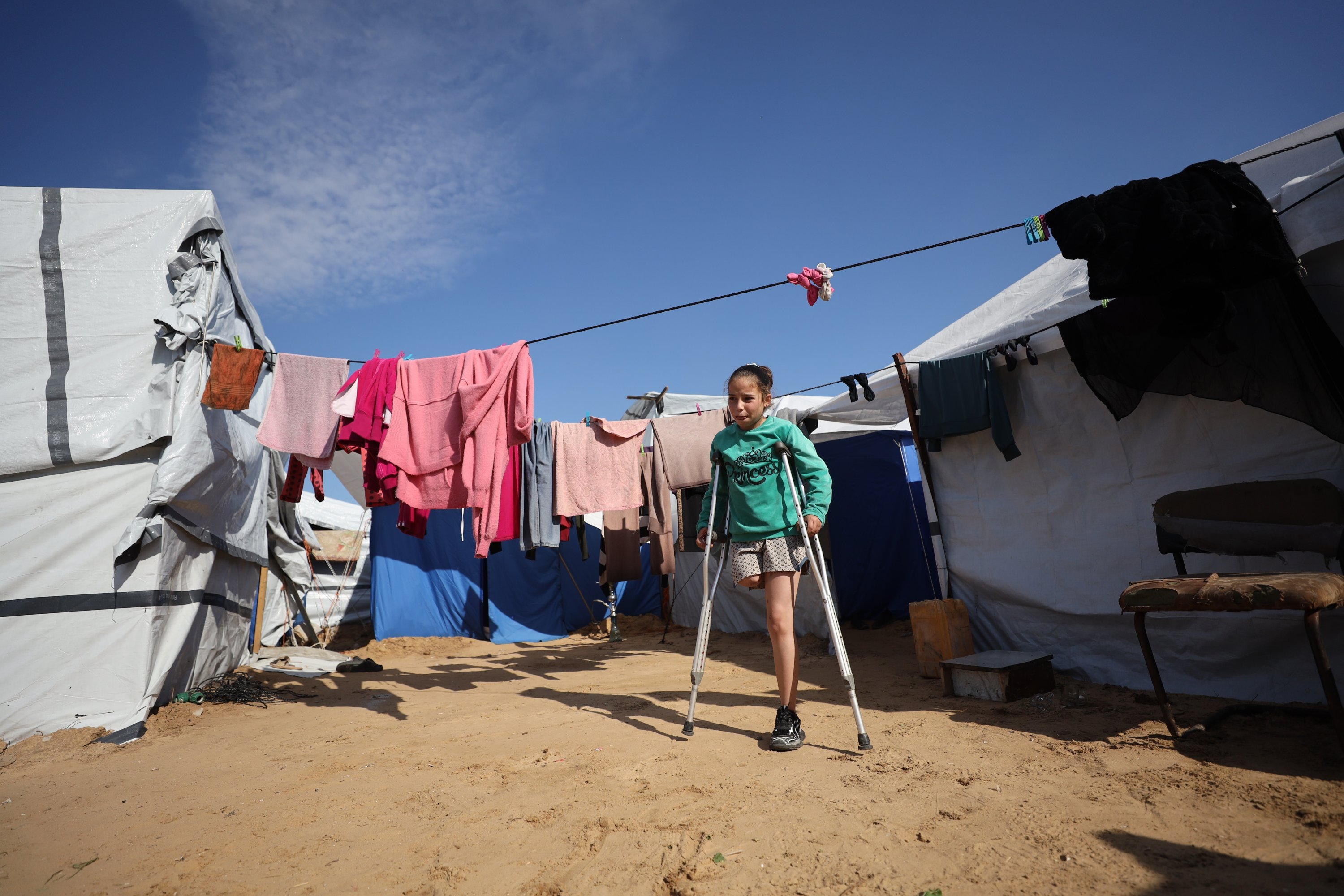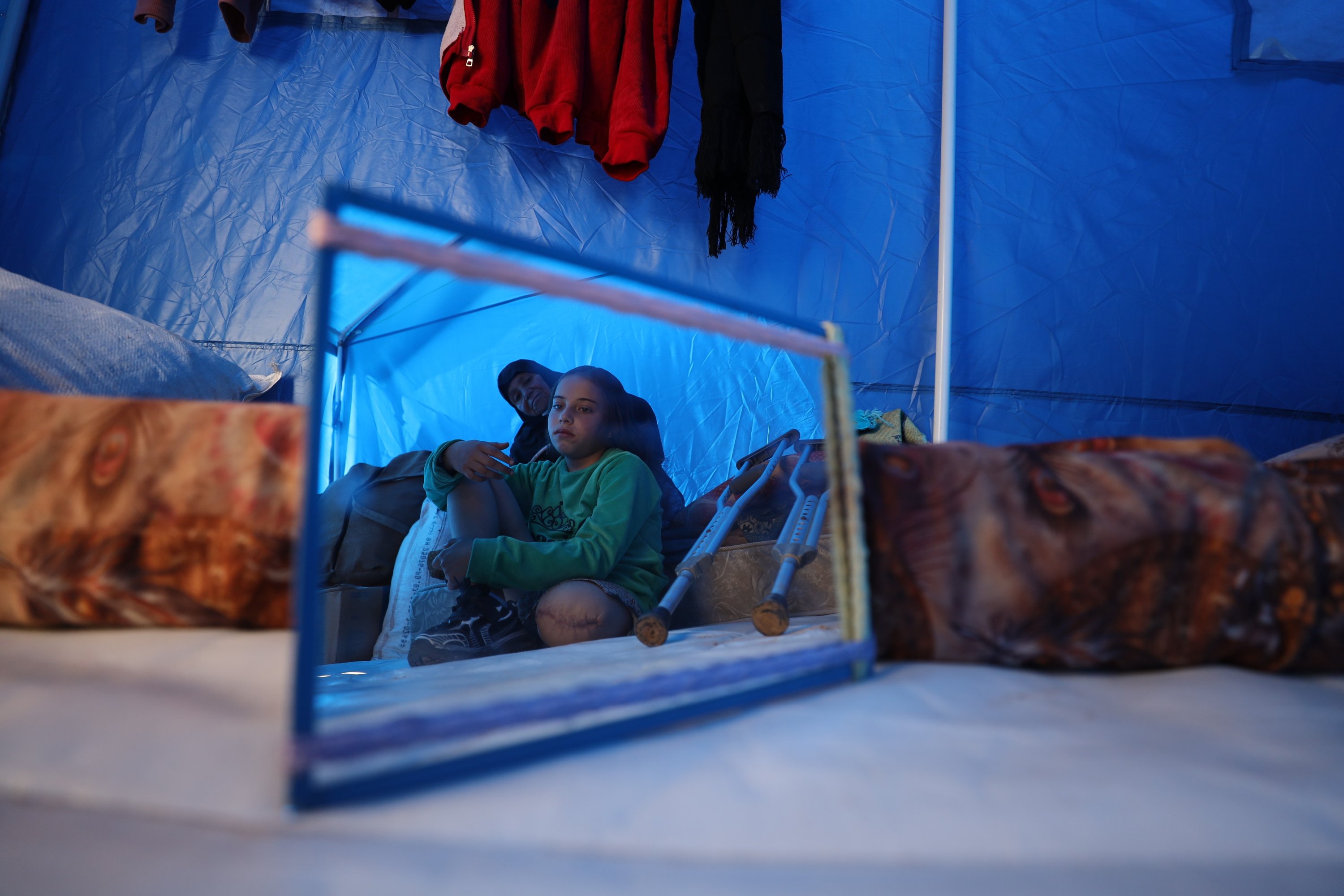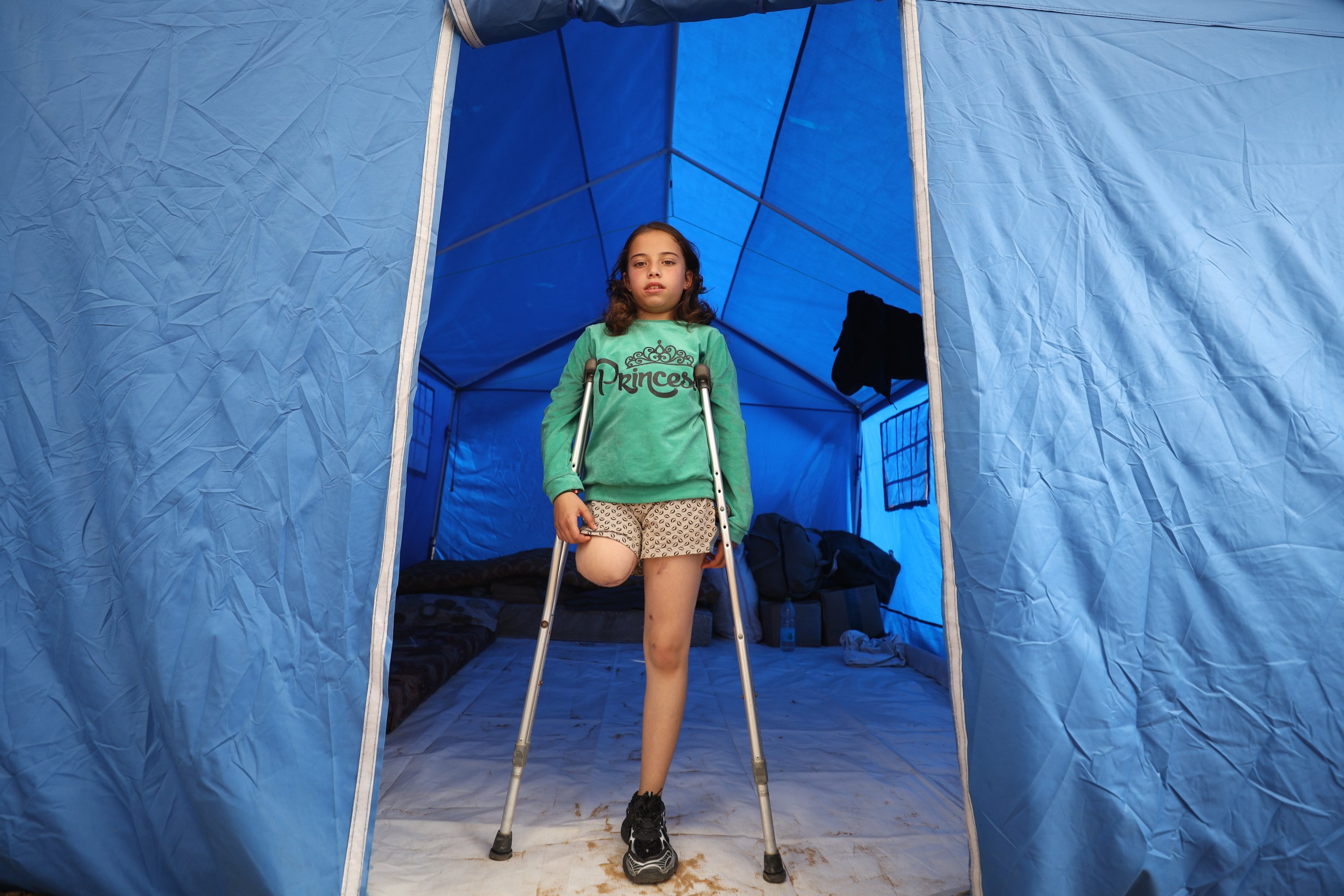 A 10-year-old girl who lost her right leg and most of her family in an Israeli strike in northern Gaza is struggling to survive in a tent in the Jabalia camp, hoping to access treatment and a prosthetic so she can walk again, Gaza, Palestine, Jan. 19, 2026.