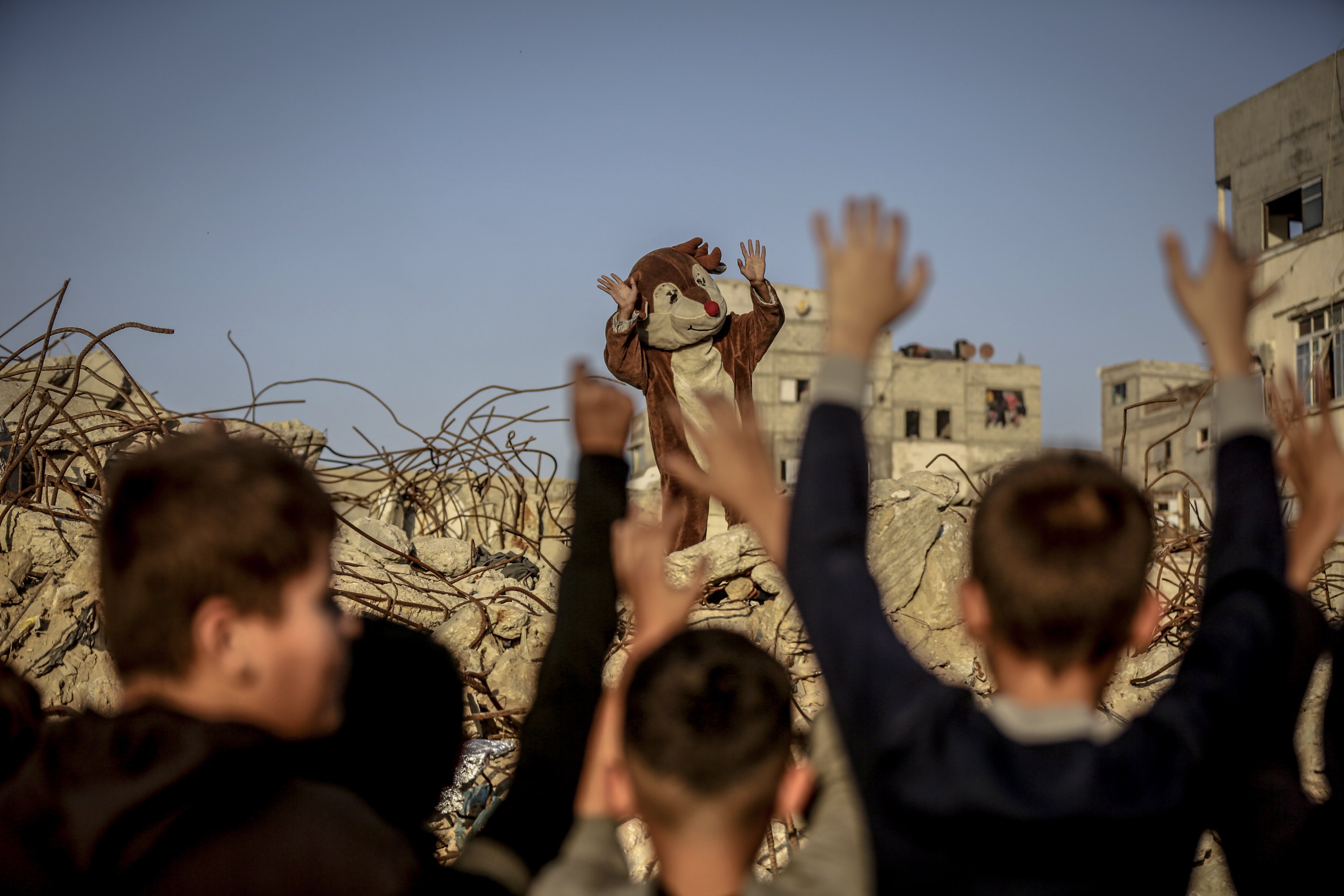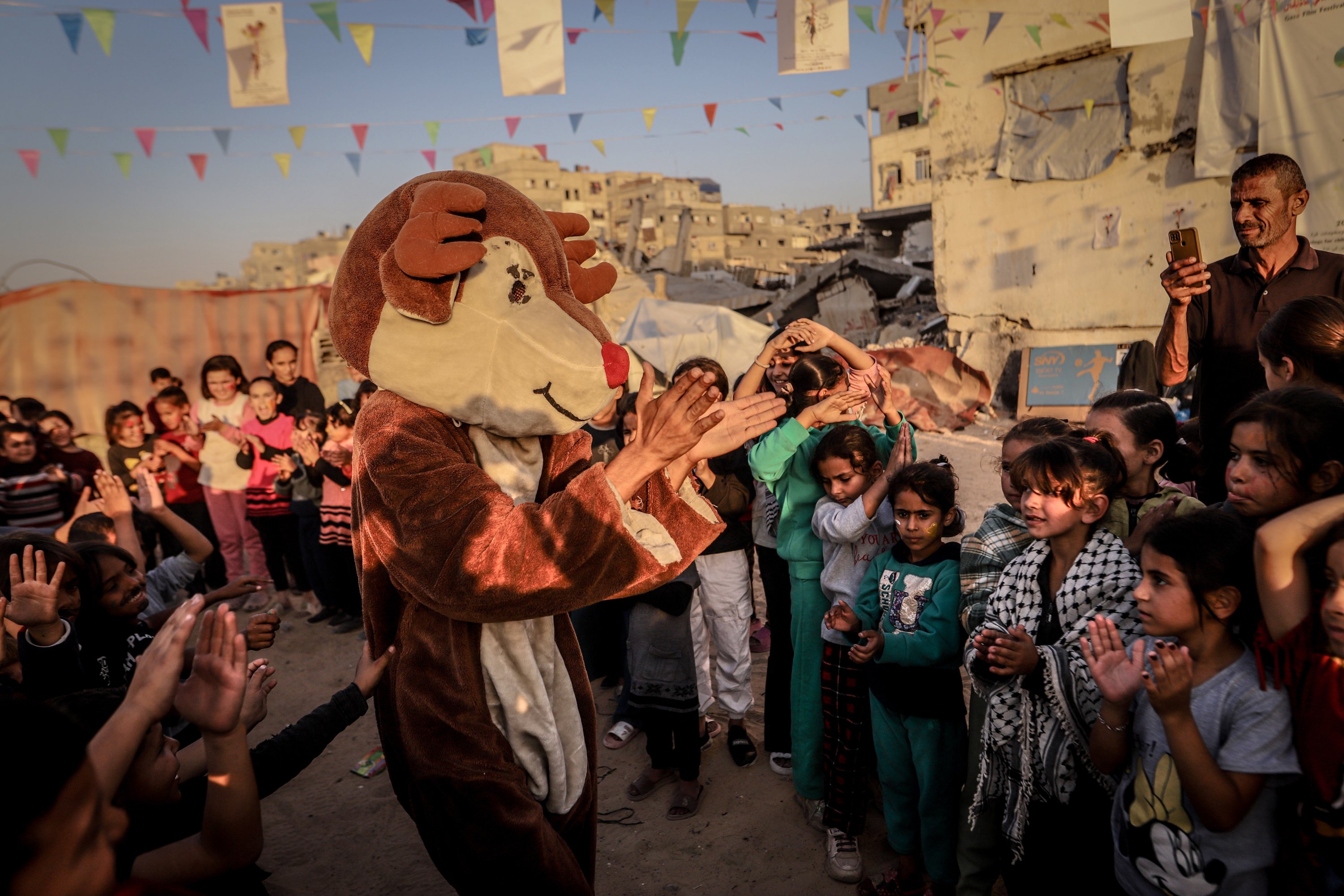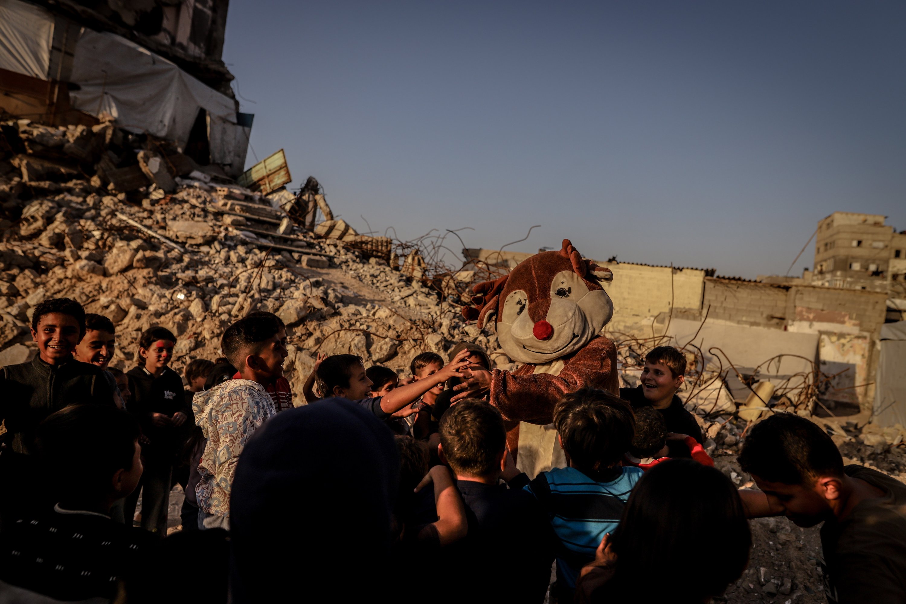 Palestinian youth bring smiles to children amid Gaza bombardments