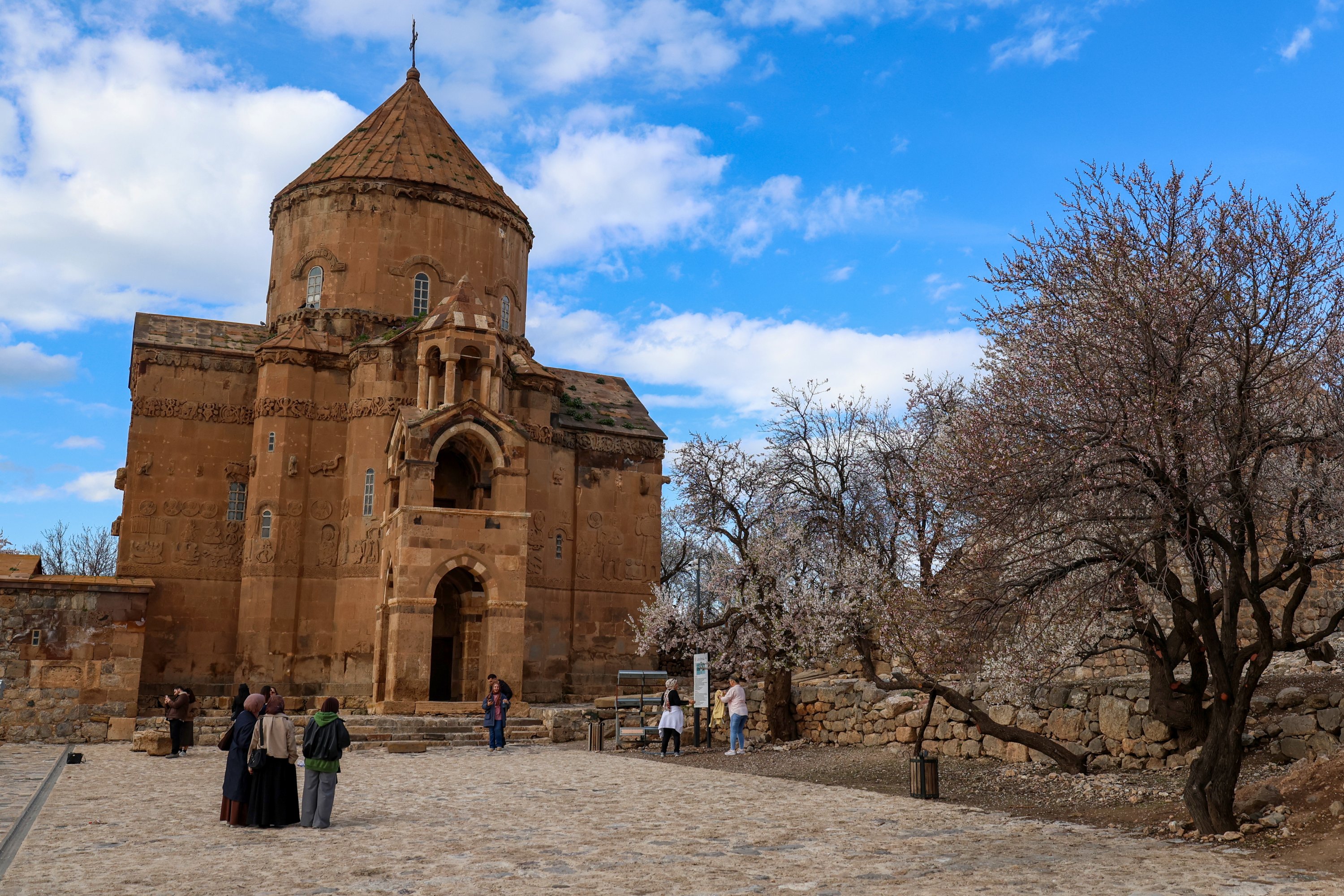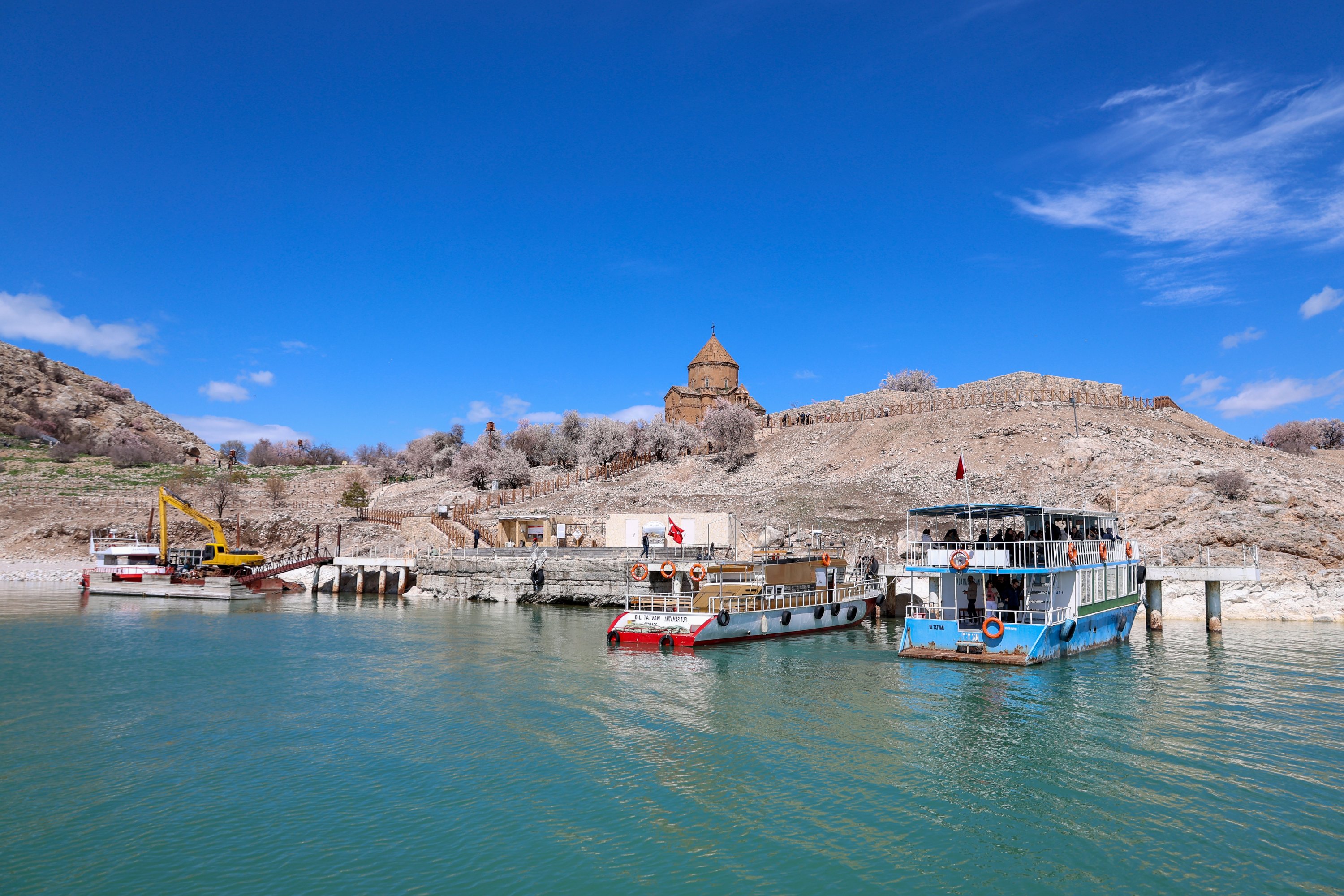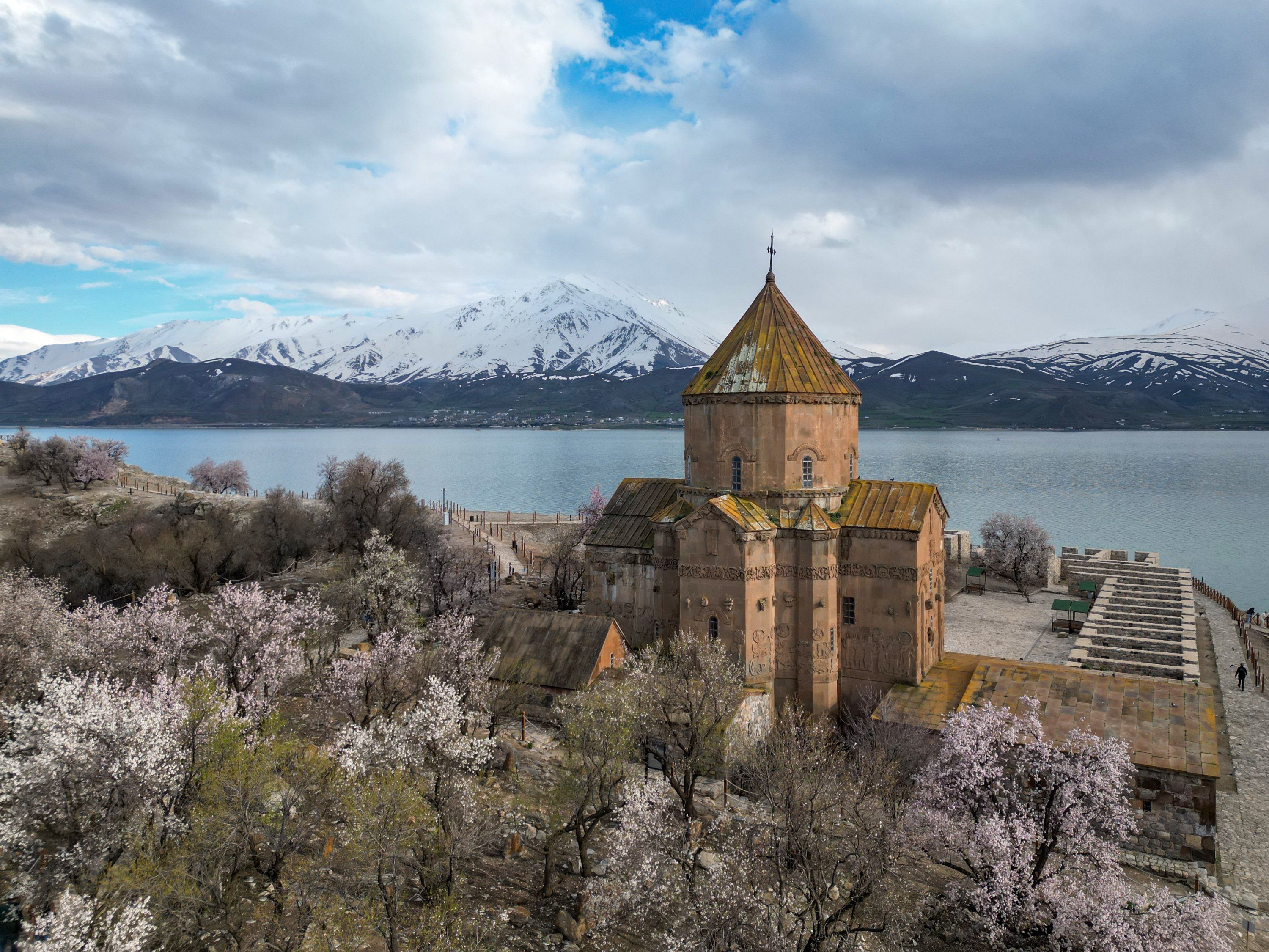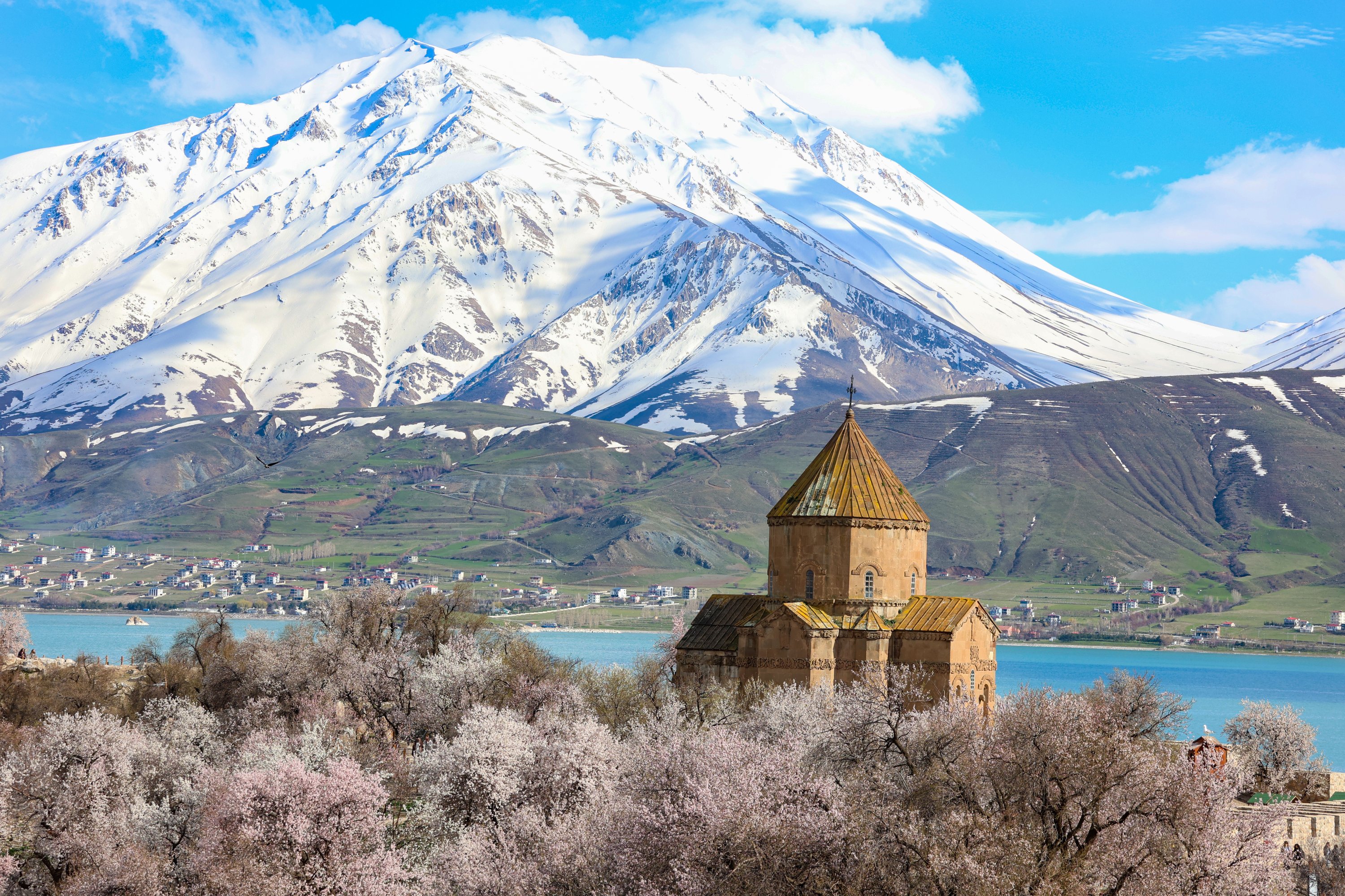 Almond trees bloom across Akdamar Island, one of the most visited sites in Lake Van, as the island is covered in spring colors, Van, eastern Türkiye, April 23, 2026.