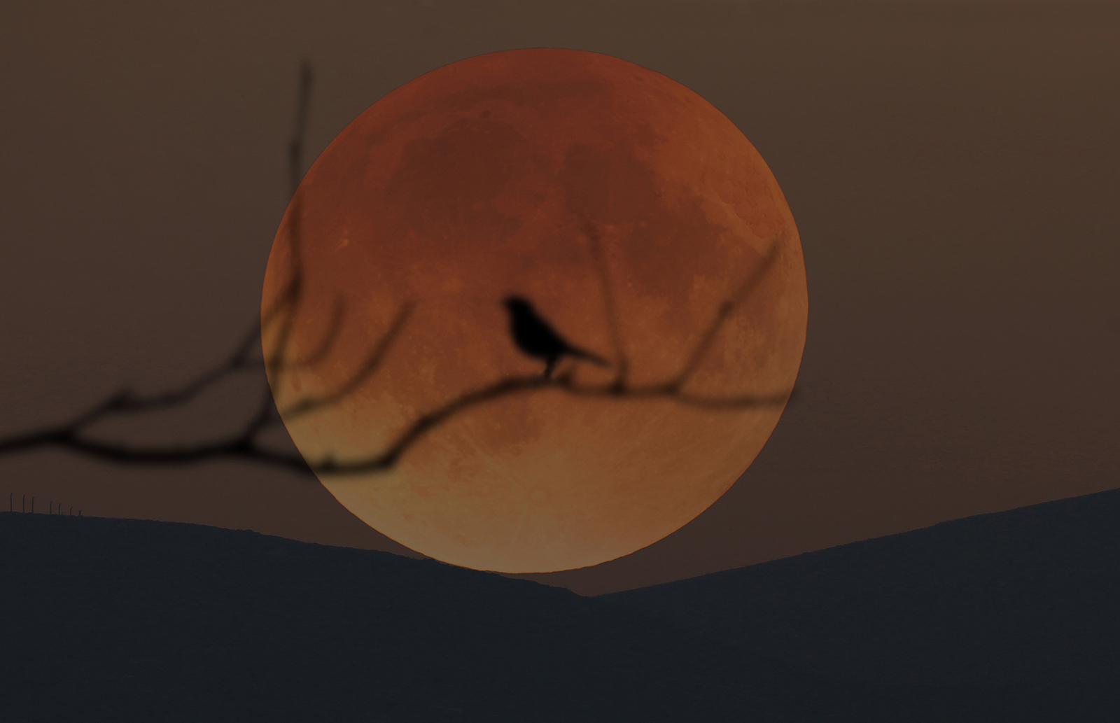 A bird pictured on a tree branch during supermoon in Turkey's Konya province (AA Photo)