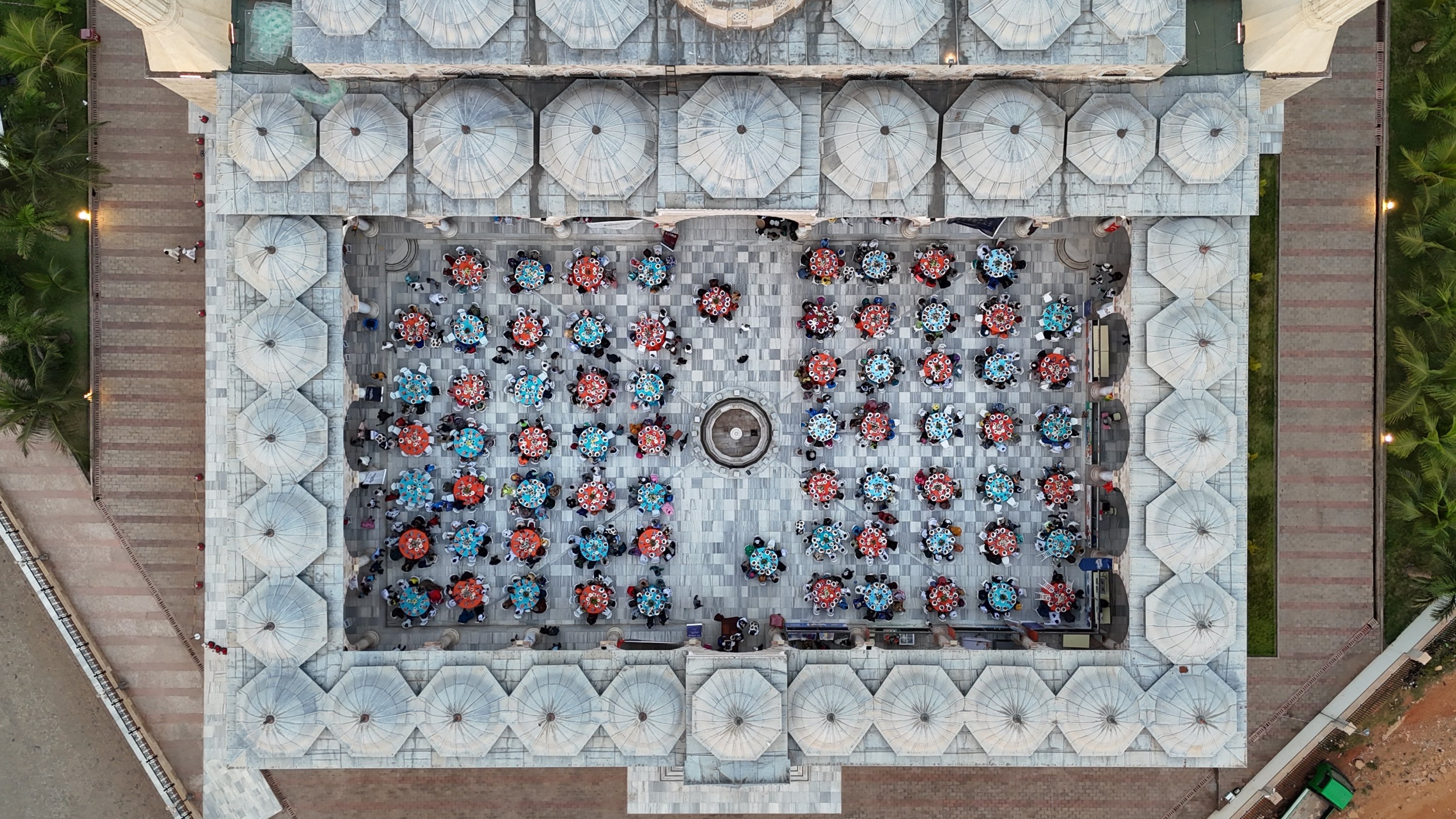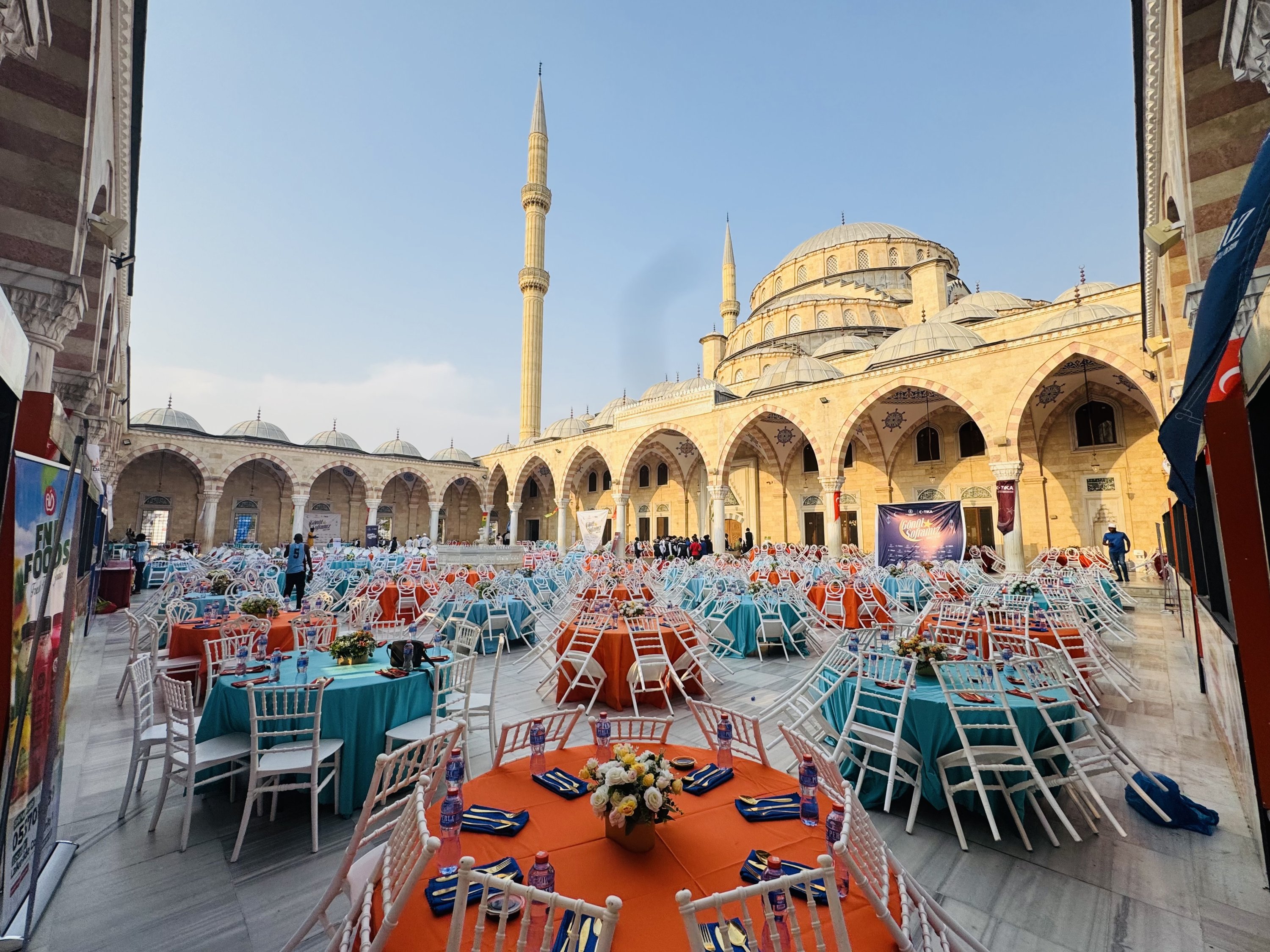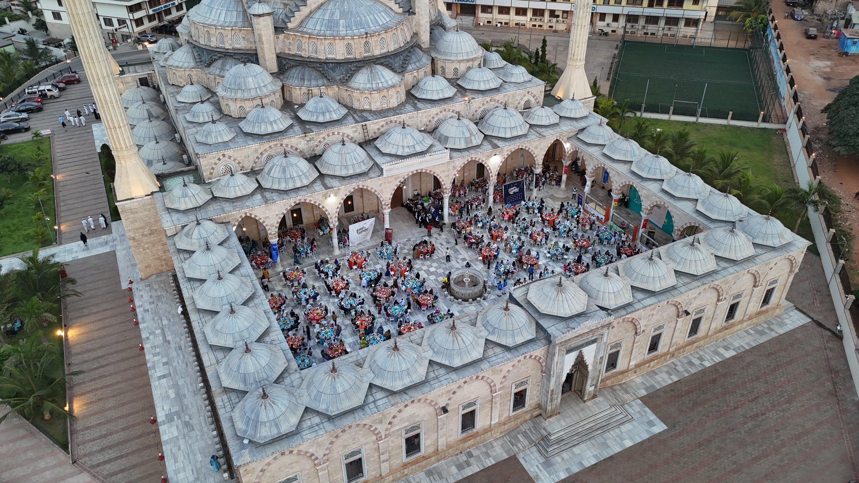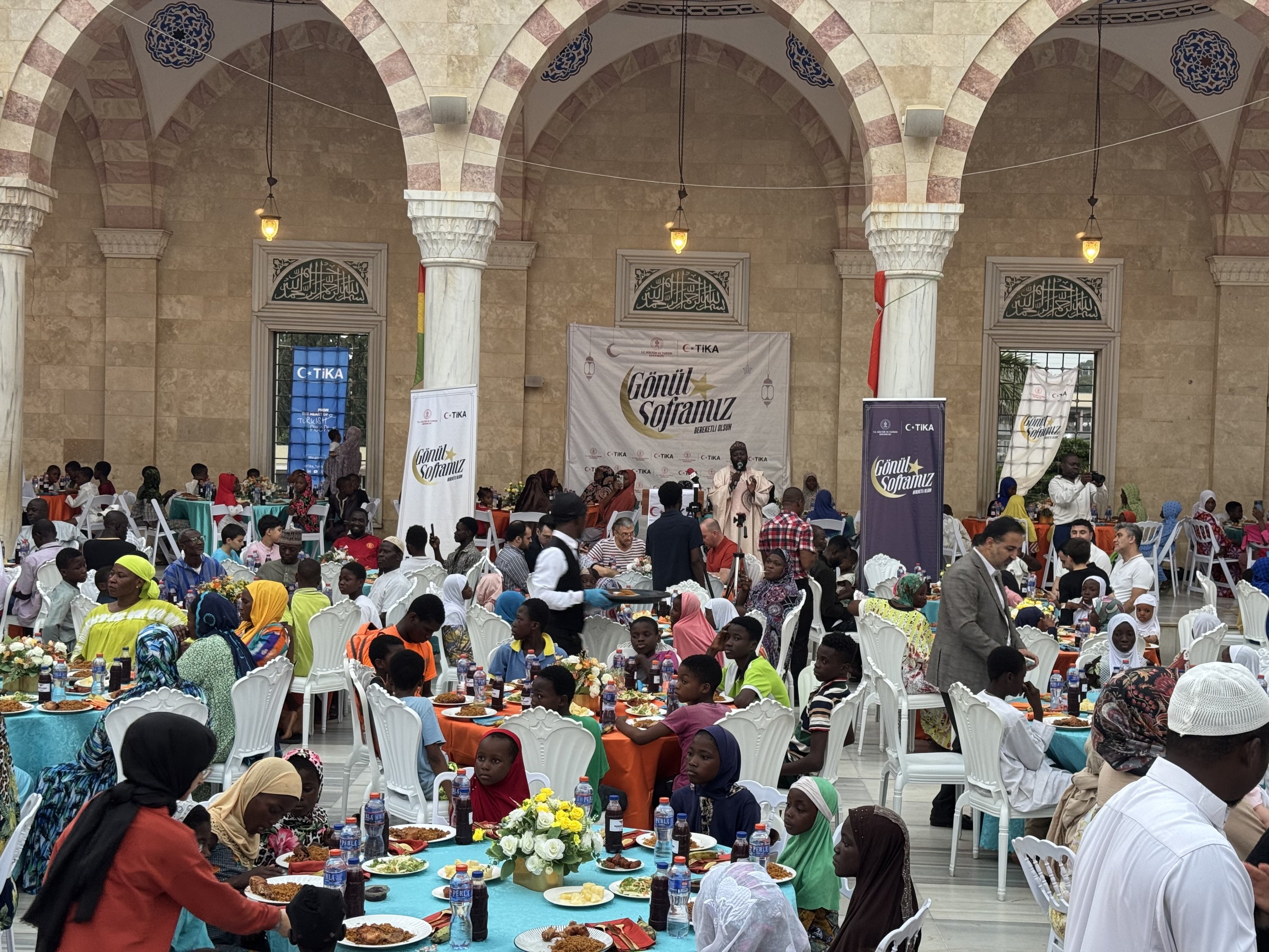 Orphaned children gather for an iftar meal during a Ramadan program organized by the Turkish Cooperation and Coordination Agency (TlKA) and the Aziz Mahmud Hüdayi Foundation in the courtyard of the Ghana National Mosque, where around 1,000 children were hosted for the fast-breaking event, Accra, Ghana, March 8, 2026.
