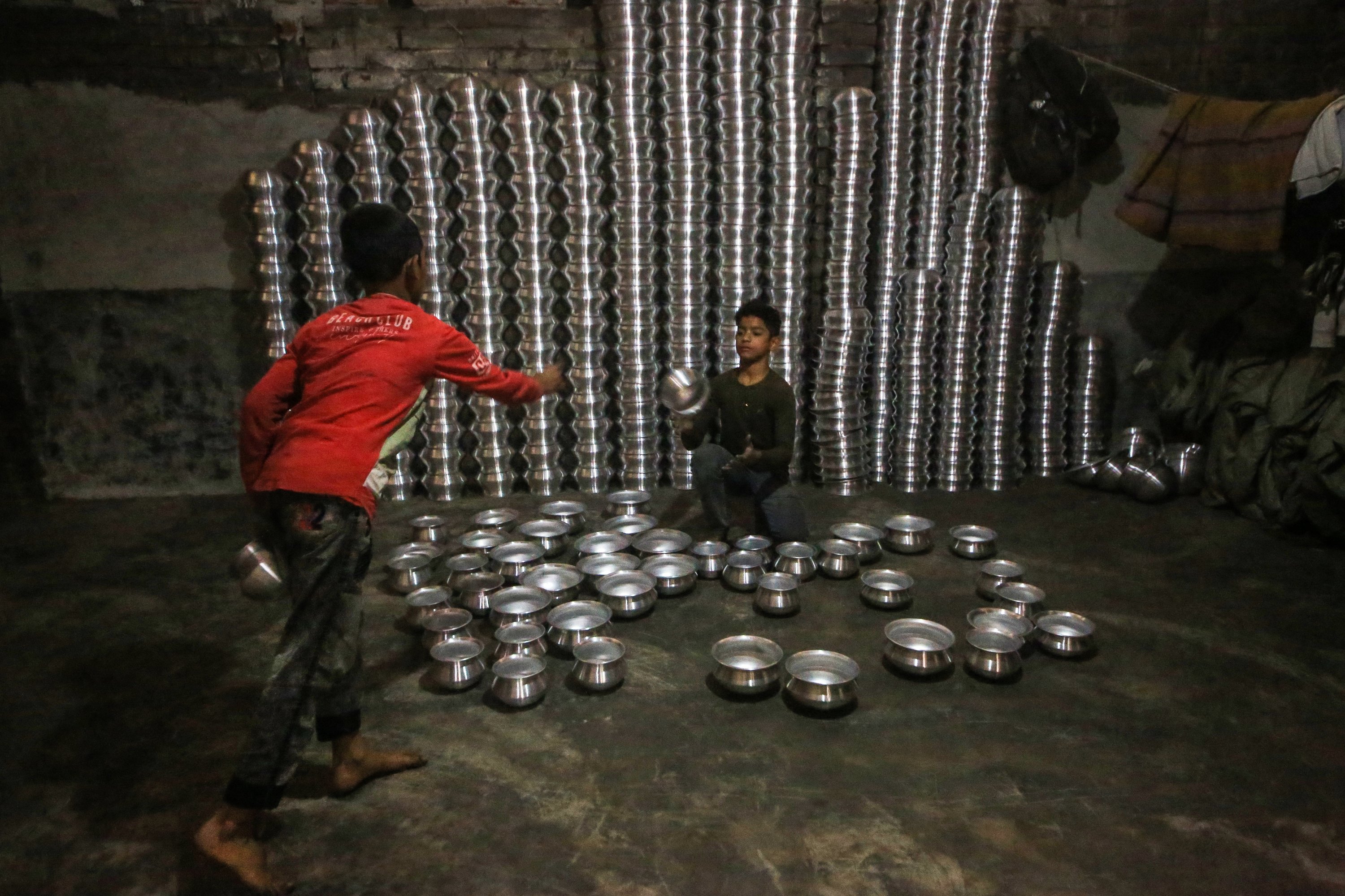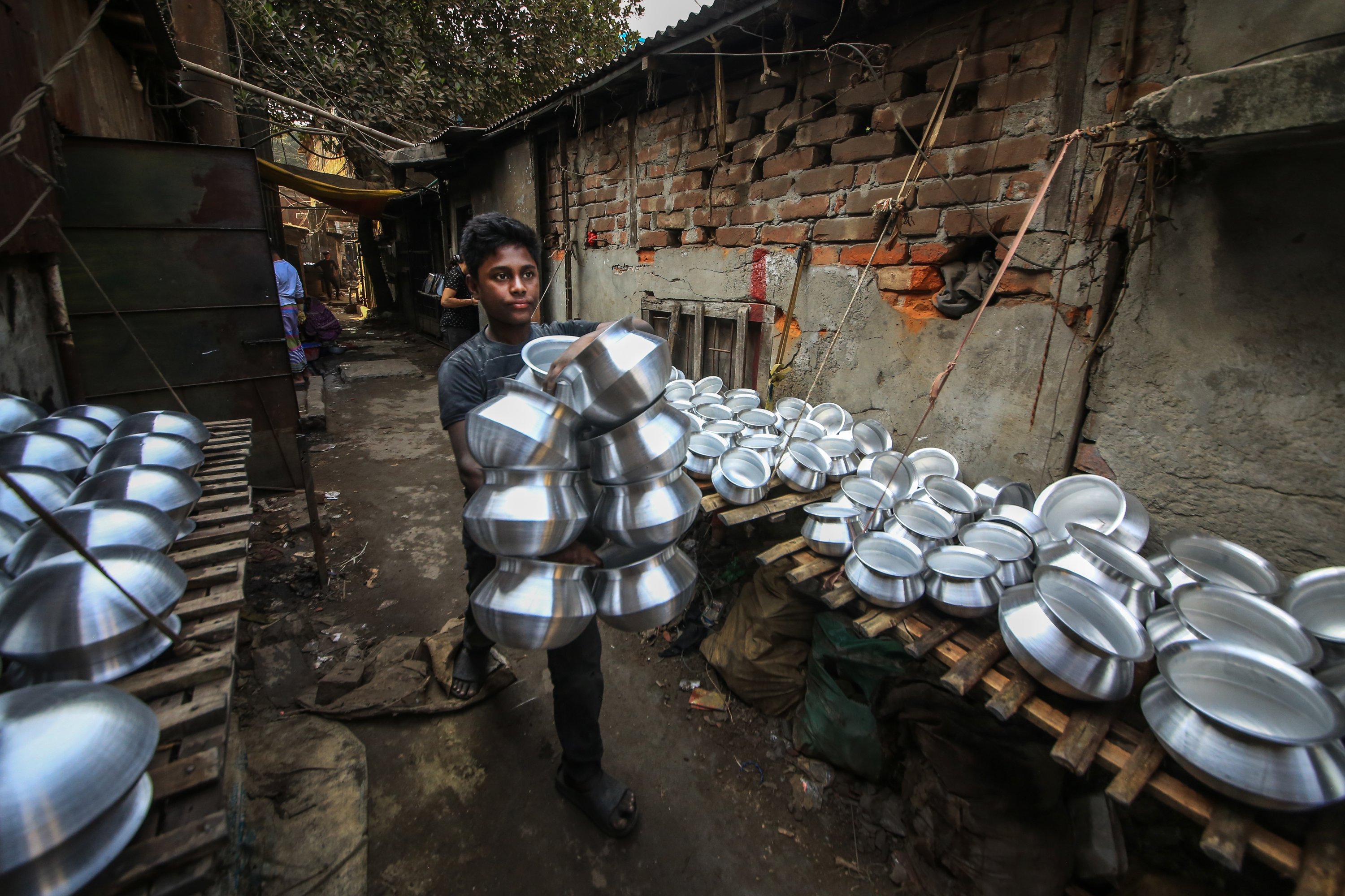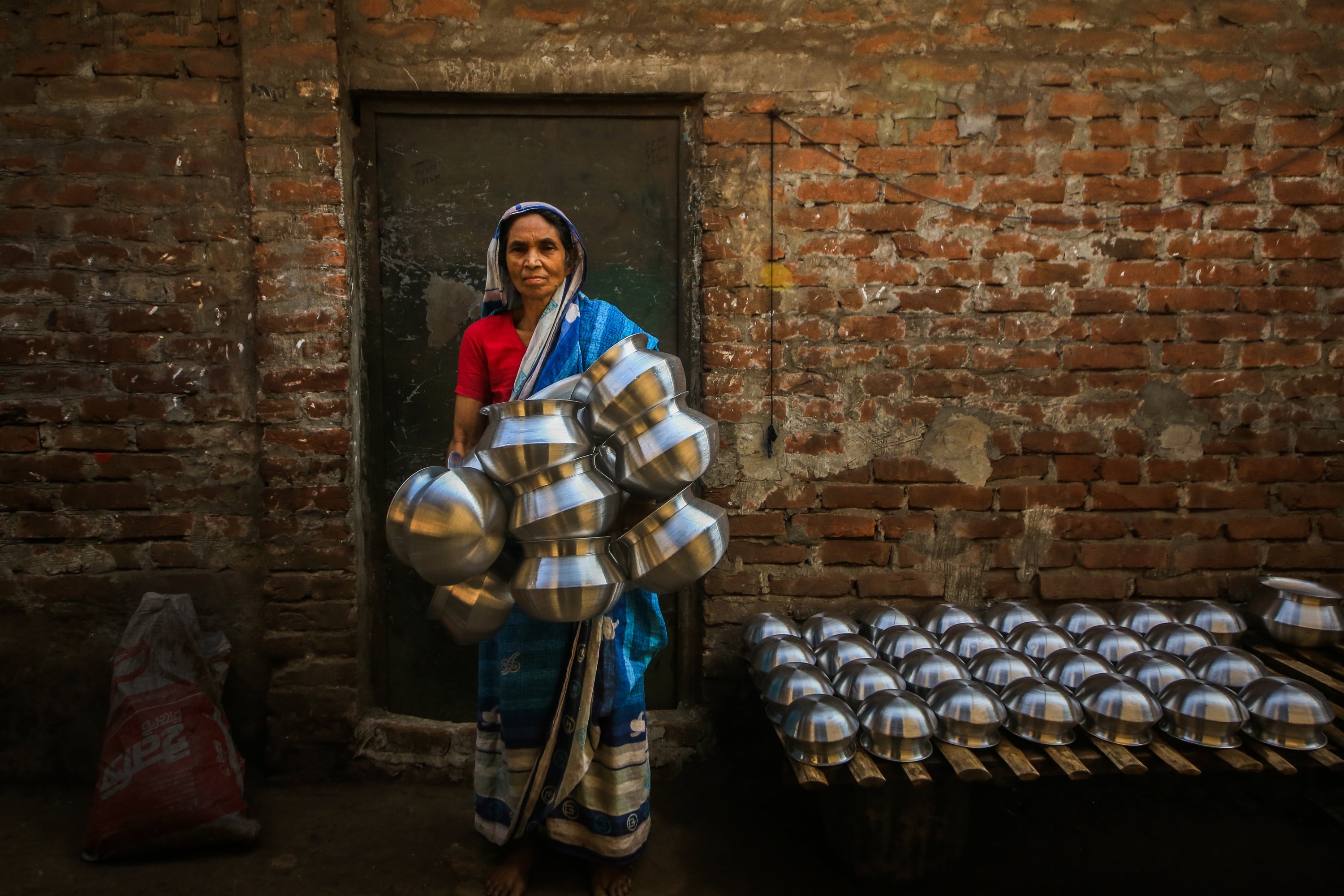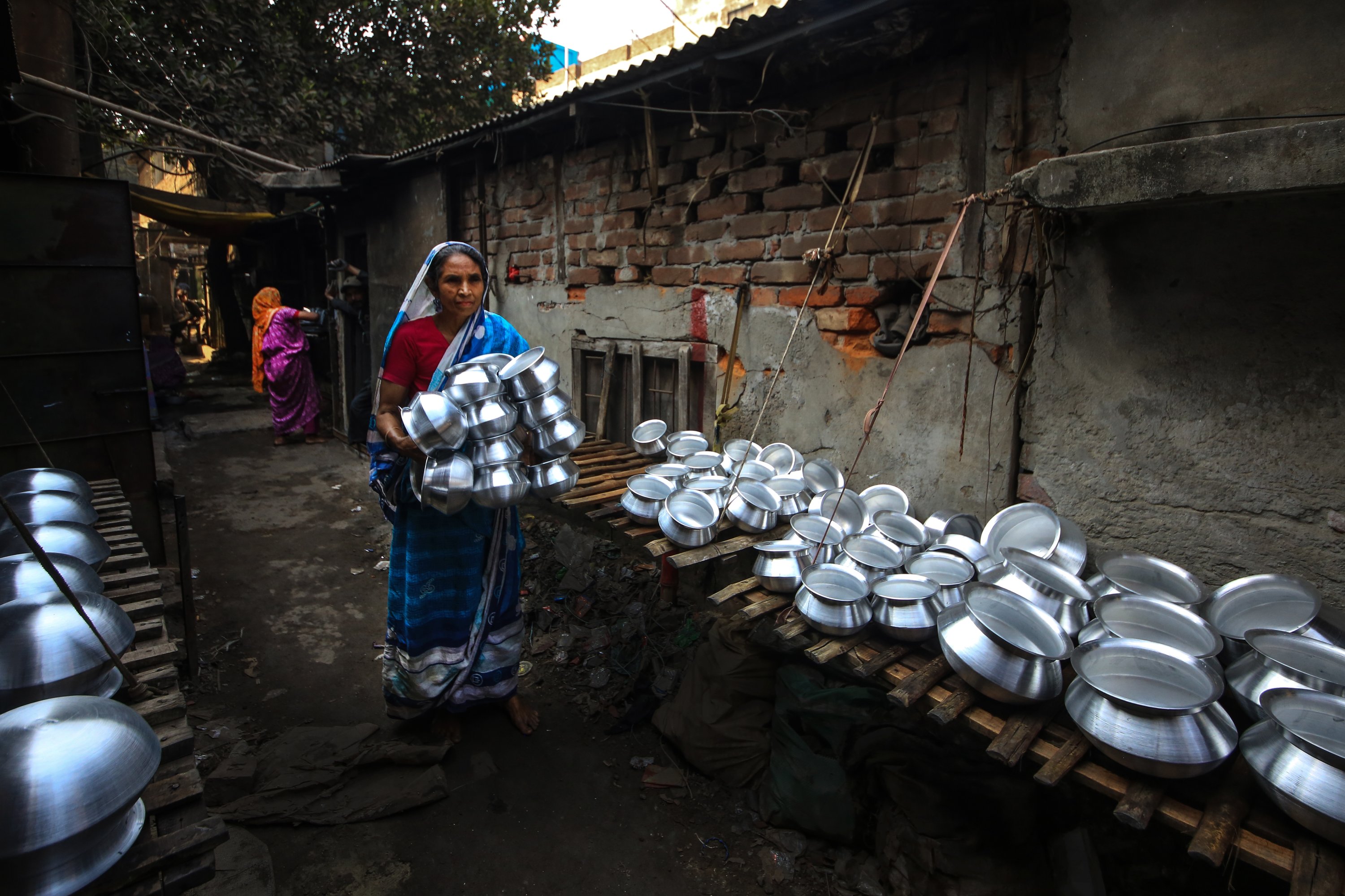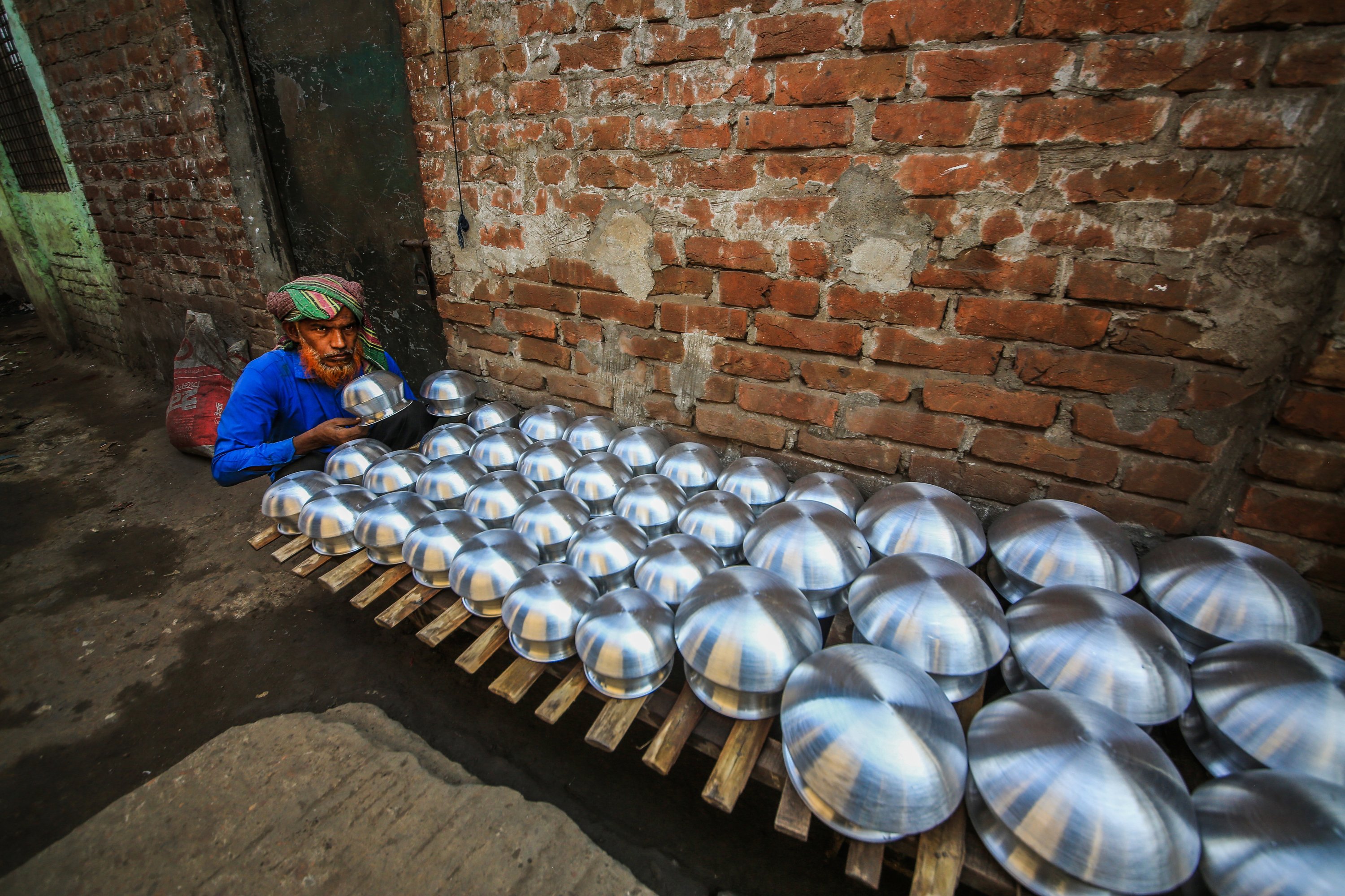 Small workshops in Dhaka, Bangladesh, are melting scrap aluminum into recycled cookware, a labor-intensive trade that relies on women and children to transport finished goods while workers face dangerous heat and limited protective equipment.