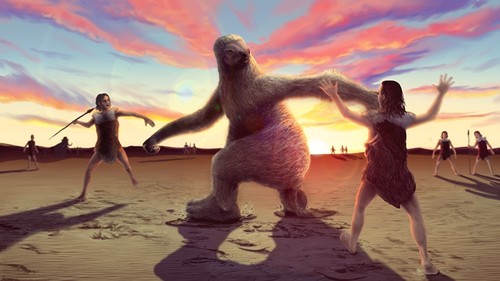 Scientists have uncovered evidence of ancient humans engaged in a deadly face-off with a giant sloth, showing for the first time how our ancestors might have tackled such a formidable prey.