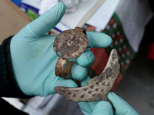 In addition to human remains, the largest tomb contained metal objects as well as ceramic and wooden dishes.