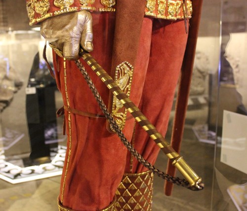 A long iron-studded sword with 150 gold plates of different sizes, a dagger, and a gold studded whip are also displayed as part of the armor in addition to a ring allegedly used as a seal by the ancient emperor.