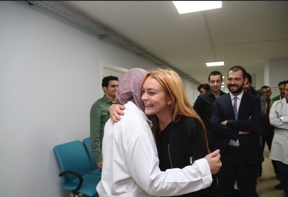 Lohan visiting the health clinic in Istanbul's Sultanbeyli district