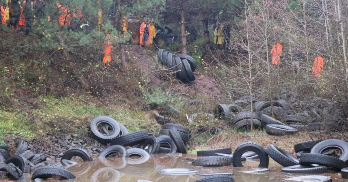 A hunter stumbled upon the tires inside a pond in Istanbul's Şile district when the pond deep in the forest dried up and the tires surfaced.