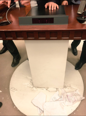 During the secret voting session of the fifth article, the process was interrupted by physical fights between the lawmakers of CHP and AK Party after CHP members occupied the parliament's podium area.