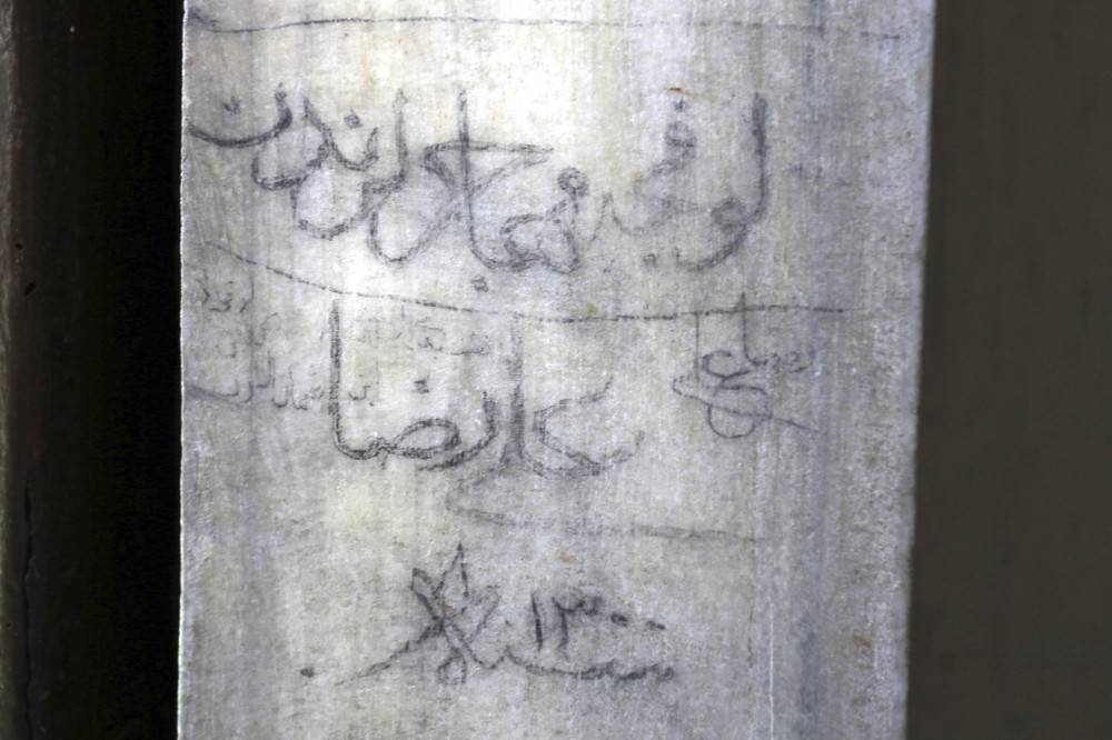 Köse said that the oldest graffiti on the walls of the Rüstem Pasha Mosque dates back to 1884, adding, "There are nearly 40 graffiti on the walls. These notes are usually written by people while they were sitting outside in a hot summer's day. It is something fascinating that a student, who studies in the city, or an immigrant who comes to his or her motherland or a soldier who travels from Çanakkale, Edirne, Bandırma or Balıkesir to write scrawled on the walls of the mosque. Among the graffiti, we come across poems which indicate that some of the people were educated in the art of words and calligraphy. These writings are important because they shed light on literature, lifestyle as well as faith and feelings of the people of that period."