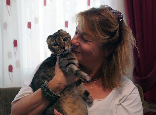 Meral Örüç, who lives in Karşıyaka district of Izmir province, found Şifa Boncuk two years ago when she was taking a stroll in a park next to her house. Seeing that the kitten was unable to walk because parts of her paws were missing, Örüç began to care for the kitten.