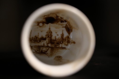 An old scene picturing the Maiden's Tower in Istanbul's Üsküdar district is drawn inside a Turkish coffee cup by Hasan Kale (AA Photo)