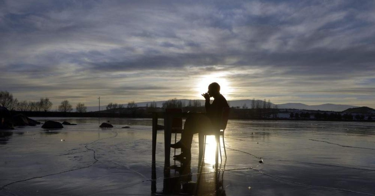 Turhan Kılıç, who runs a fish restaurant in the village of Akçakale, has been offering his customers an unforgettable dining experience by setting up a few tables on the frozen lake itself so that visitors can enjoy their beverages while they watch the breathtaking sunset.