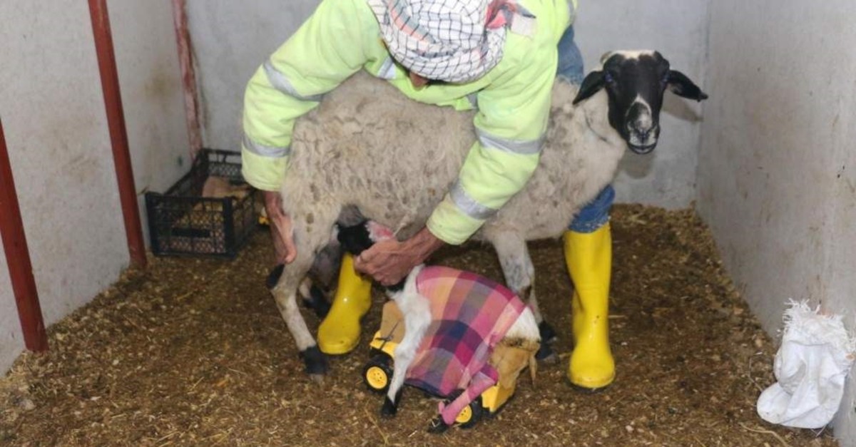 A Turkish stockbreeder in the Saruhanlı district of Manisa province is warming hearts across the country thanks to the lengths he is willing to go to make sure one of his lambs can feed and walk properly.