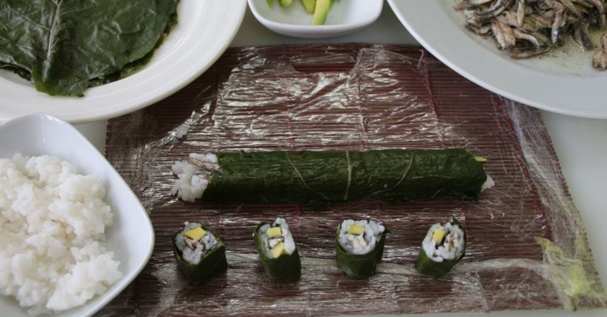 Sushi is traditionally made out of vinegared rice, raw or cooked fish and vegetables wrapped in a sheet of nori (seaweed), but Türüt decided to swap out the outer layer with boiled black cabbage and use the region's famed fried anchovies (hamsi) to go with the rice, complete with chunks of creamy avocado.