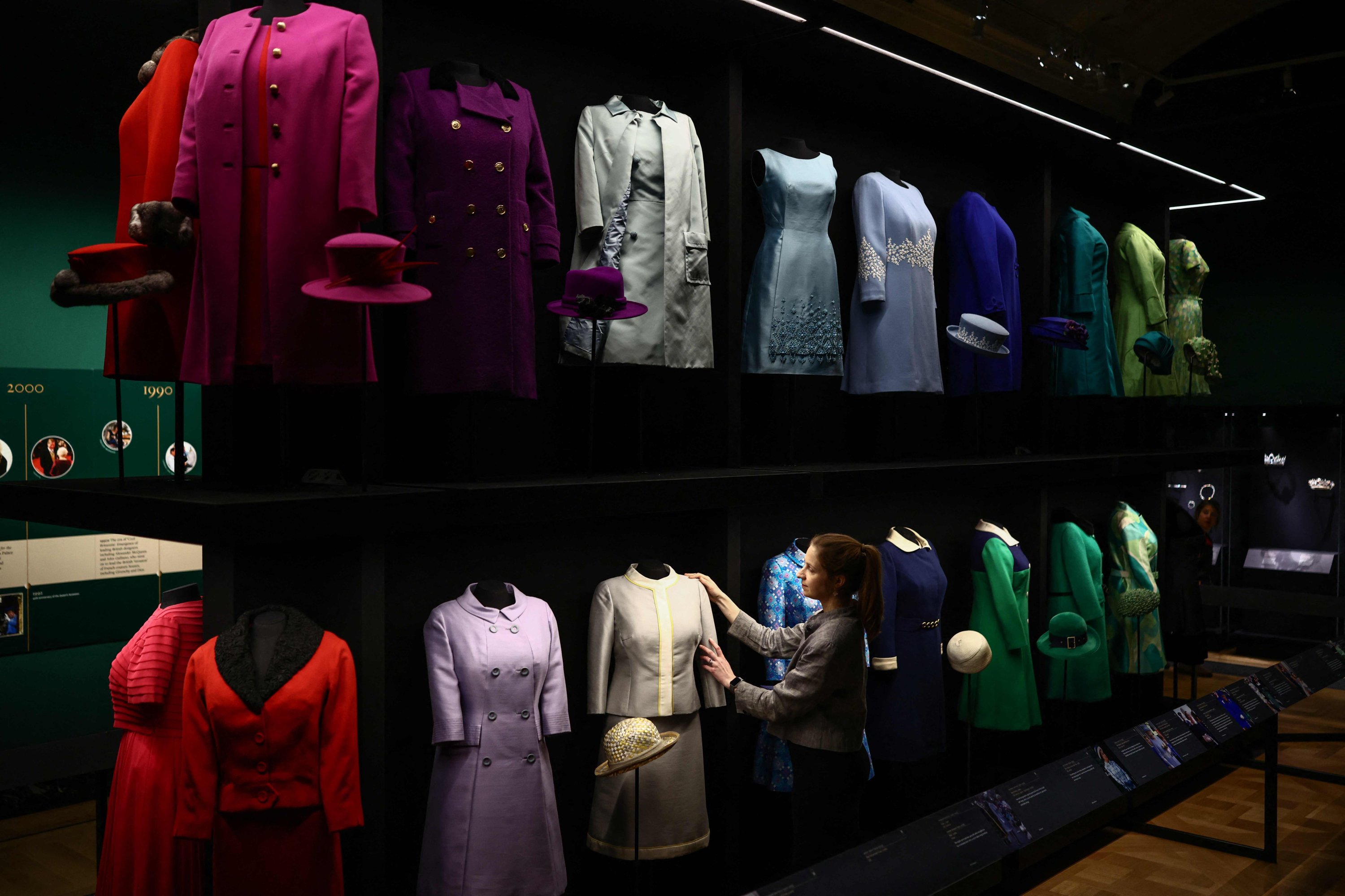 The exhibit also explores the queen’s off-duty wardrobe. The tweed suits she wore at Balmoral Castle, the royal family’s summer retreat in Scotland, are on display alongside clothes for riding, hiking and other outdoor pursuits. There’s a thick woolen coat Kelly designed during Elizabeth’s later years alongside items by Burberry and British designer Hardy Amies.
