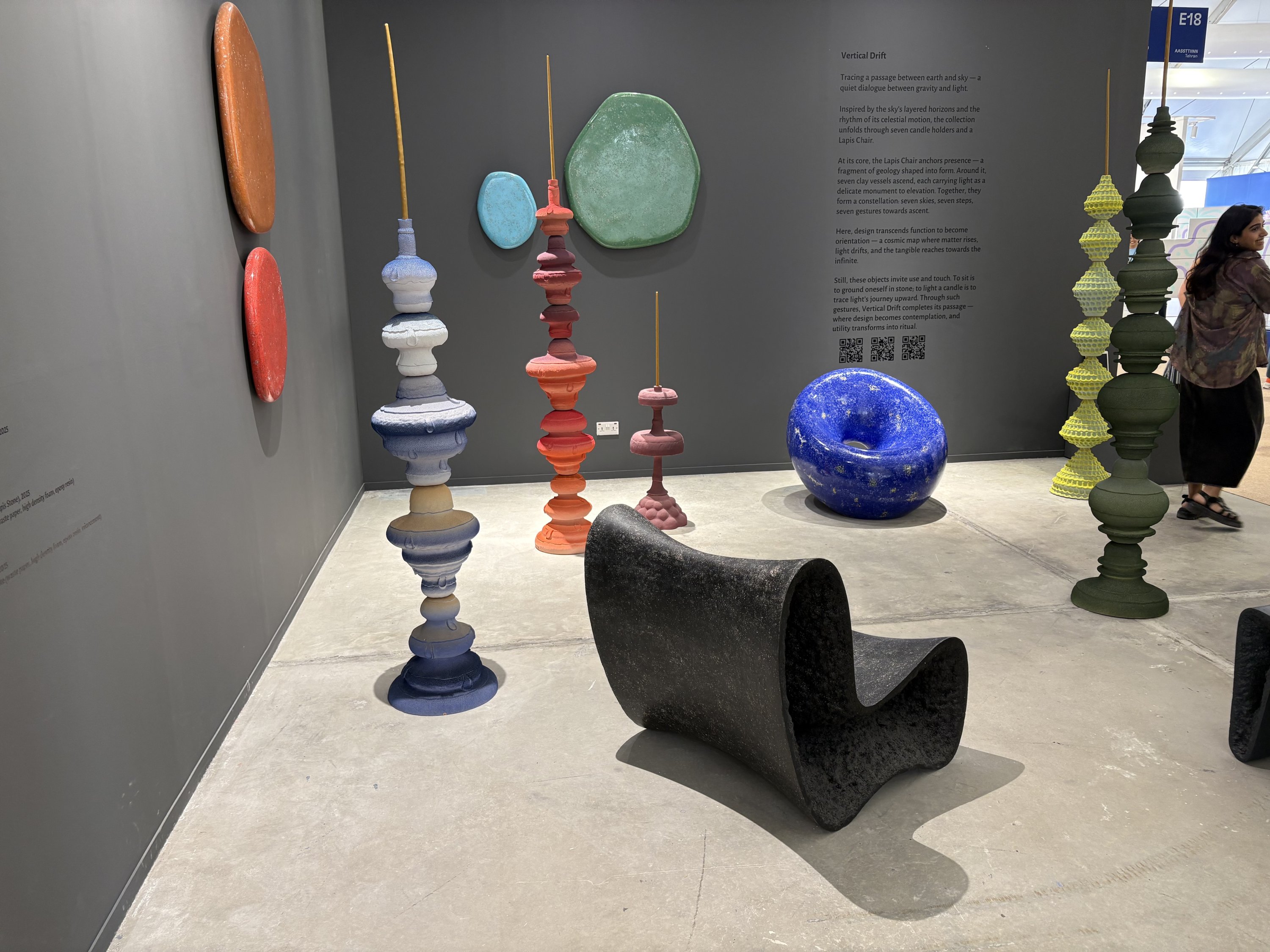 Other booths celebrated regional narratives from Zawyeh Gallery’s evocative Palestinian works to Asateer Studio’s reinterpretation of Emirati motifs in modular wall dividers. Each project felt like a conversation between past and present, craftsmanship and innovation.