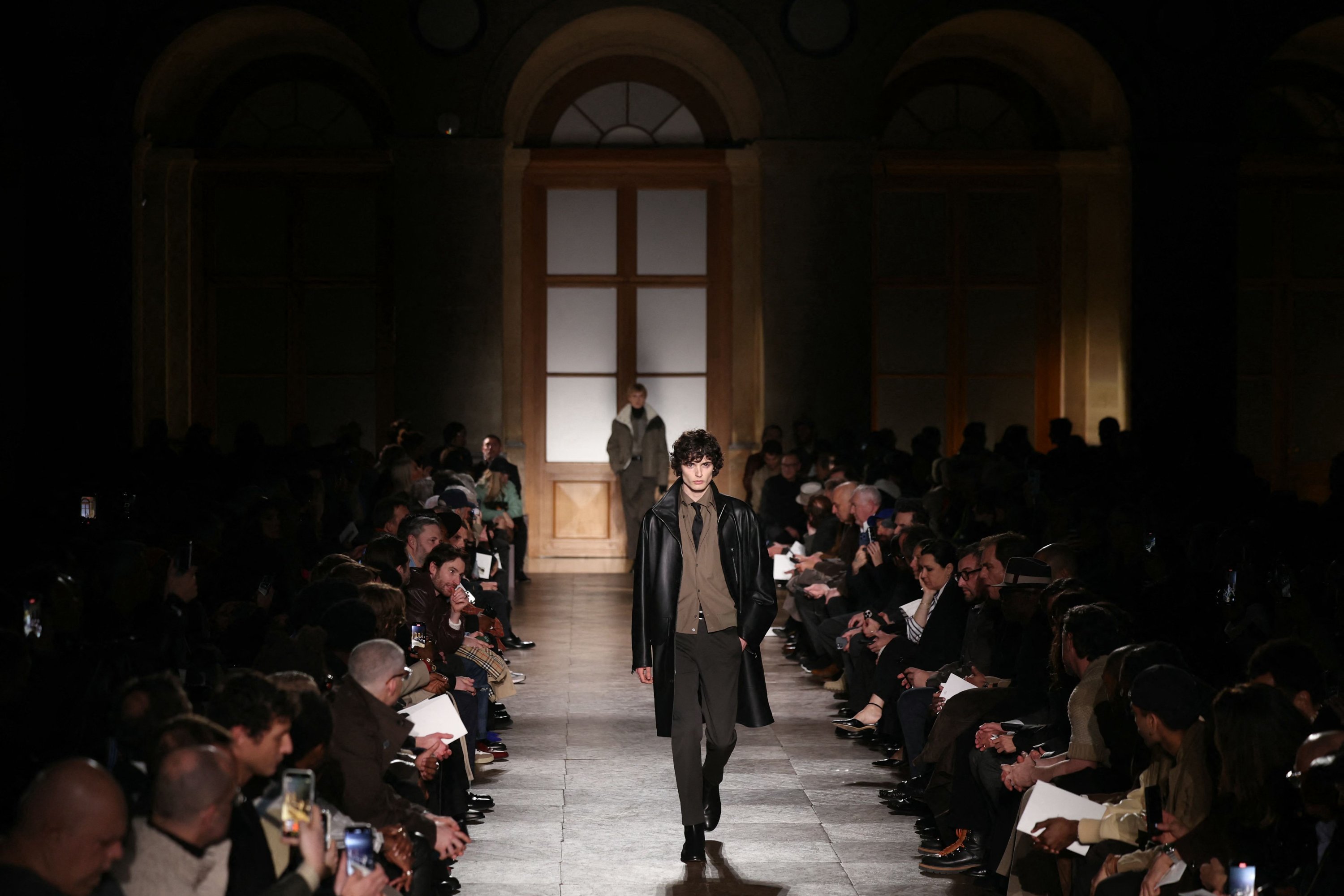 At Hermes, Nichanian closed her last men’s show after 37 years with a dark coat in glossy crocodile leather.