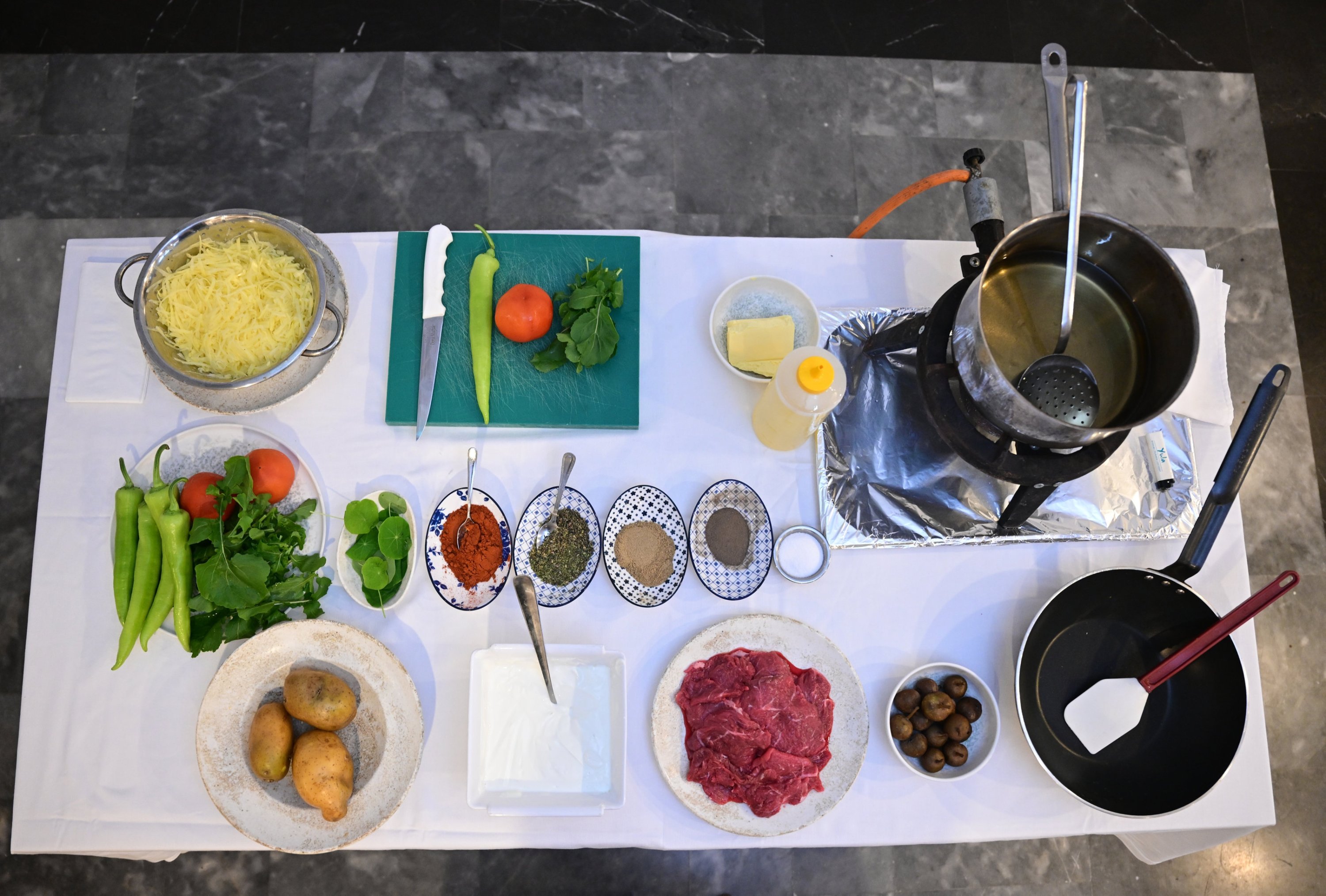 Ingredients for çökertme kebab, a traditional Turkish dish, are displayed on the table, Muğla, southwestern Türkiye, Jan. 8, 2026. (AA Photo)