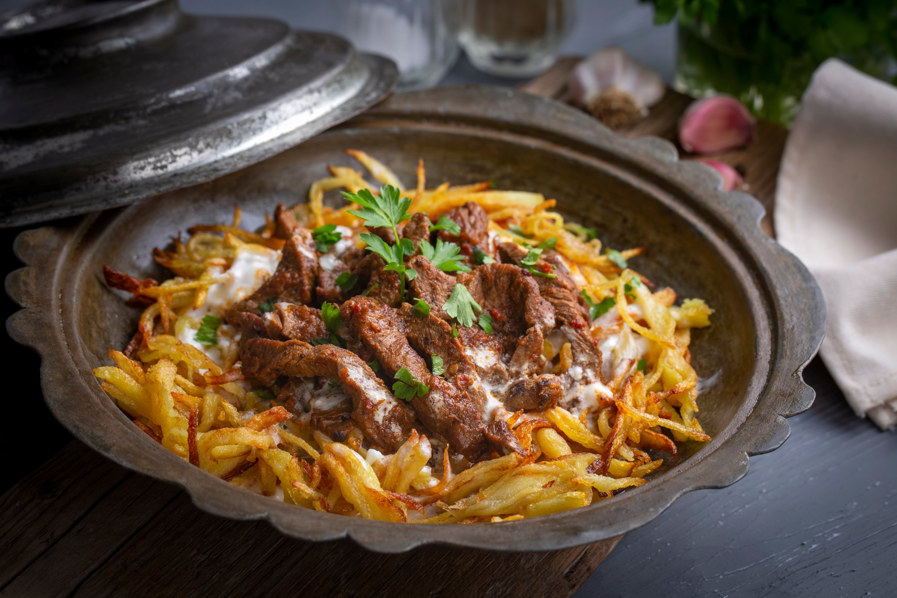 Çökertme Kebab: Ranked seventh, Çökertme Kebab from the Milas-Bodrum region features thinly fried potatoes topped with marinated beef or tenderloin, finished with garlic yogurt and a special tomato sauce.