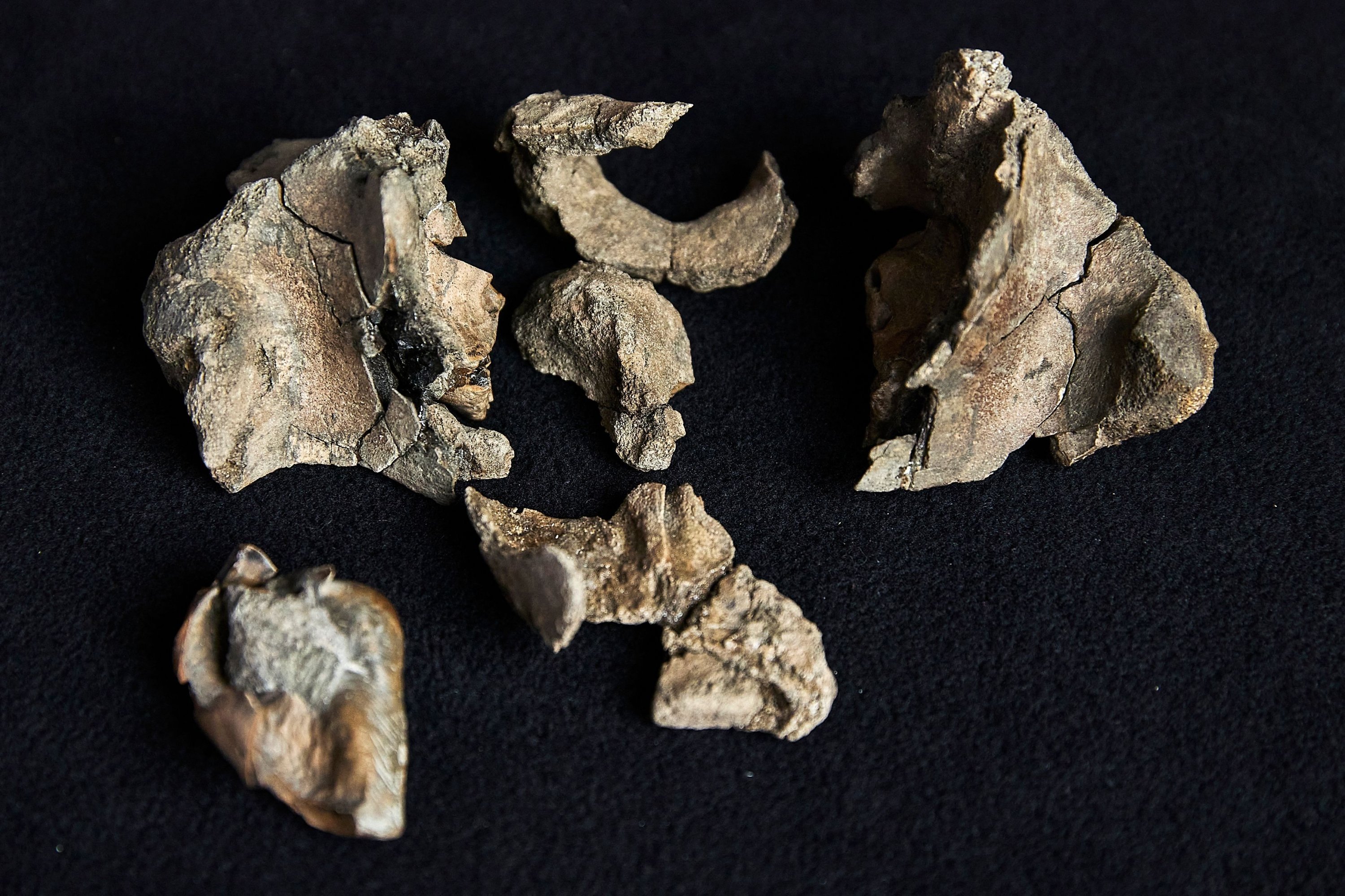 A partial fossil skull of a Janjucetus dullardi at Museums Victoria, Melbourne, Australia, Aug. 5, 2025. (Museums Victoria via AFP Photo)