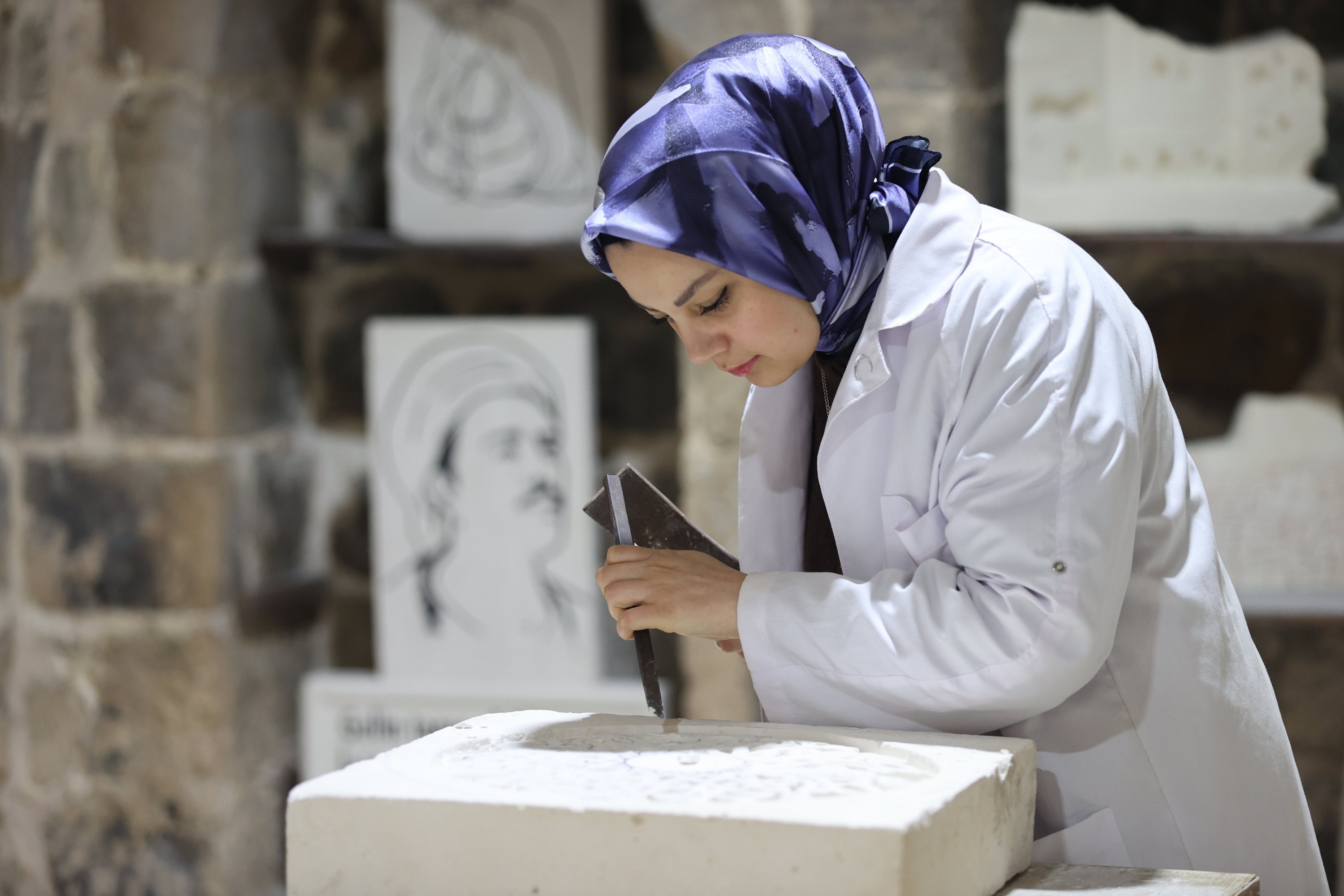 She said she trained under master stone craftsman Aydın Nas and has been shaping stone at the institution for about two years.