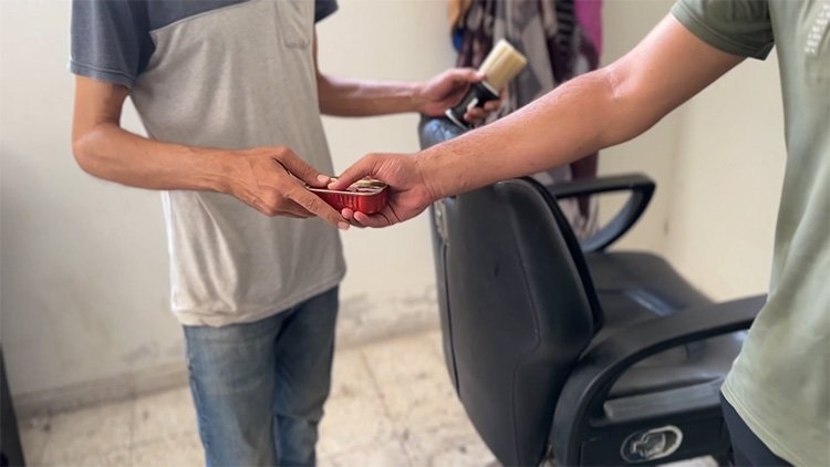 Before the war, Imad’s business was thriving, but everything changed when the conflict began. He explained the origin of his barter idea: “We used to hear from our ancestors that they would get haircuts in exchange for wheat or barley. I thought we should try it now because our current situation is even harder than theirs.”