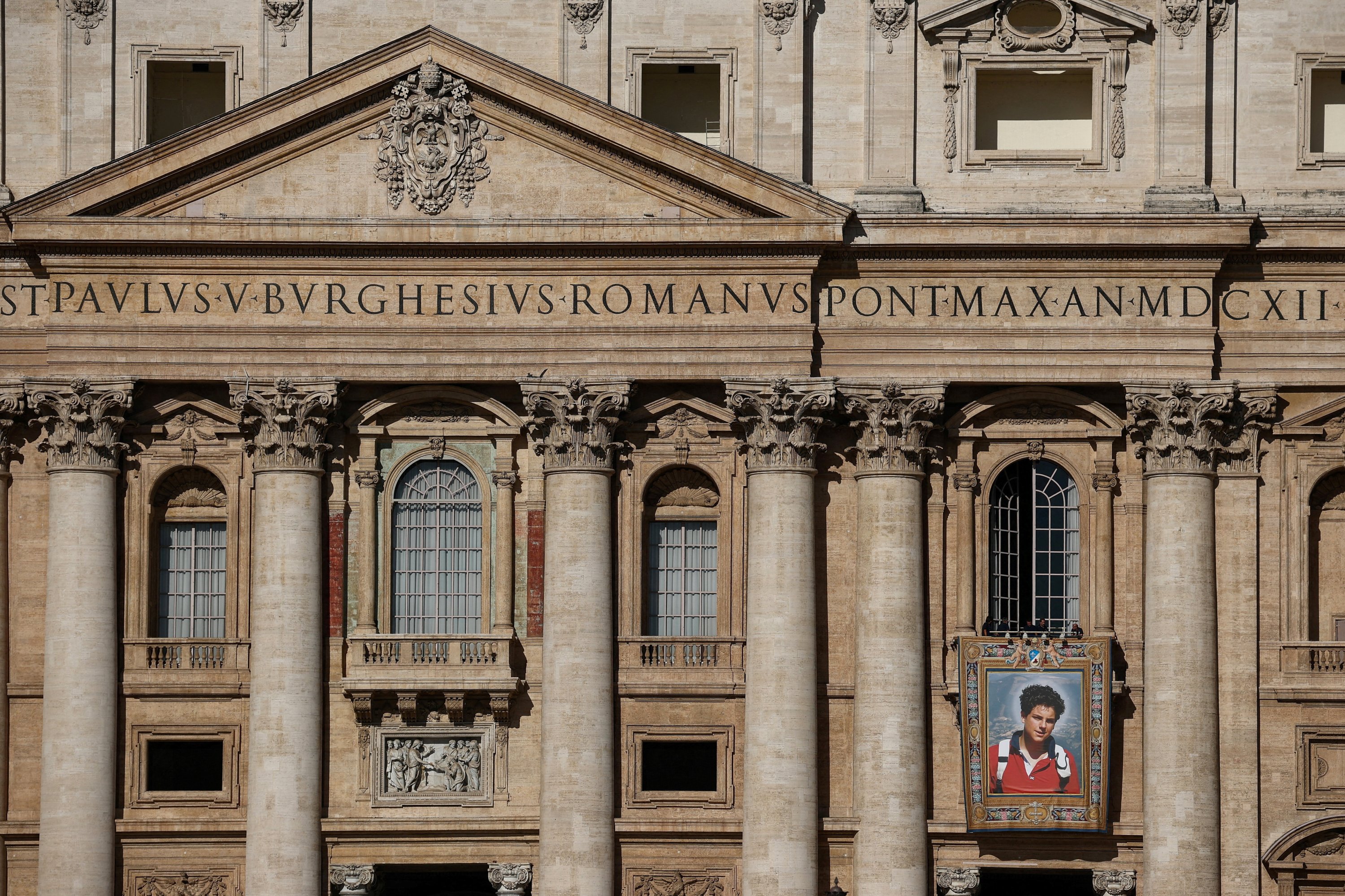 A large tapestry featuring a photograph of the saint-to-be hung on the facade of St. Peter's Basilica ahead of the ceremony.