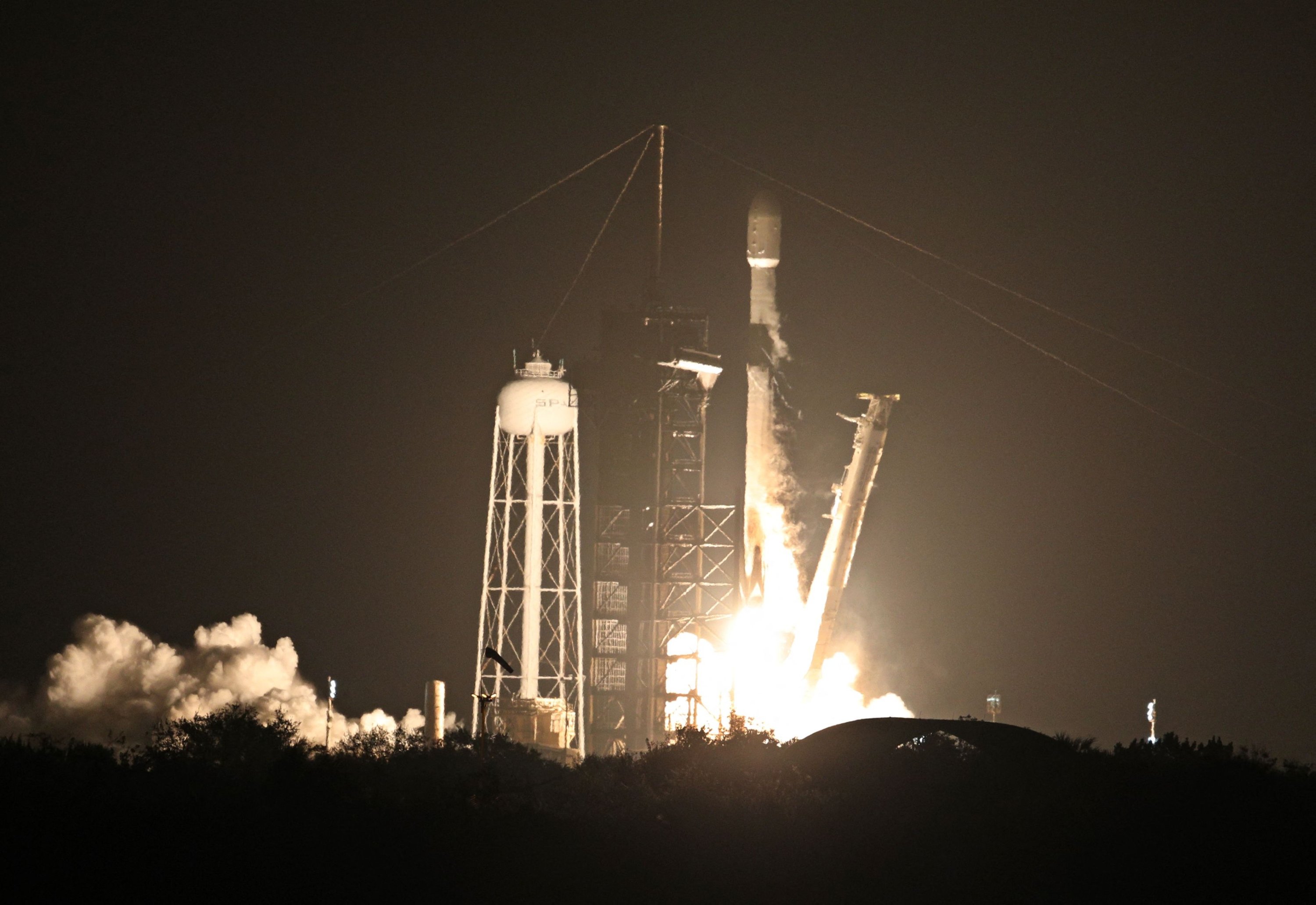 A SpaceX Falcon 9 rocket, carrying Firefly Aerospace's Blue Ghost and ispace's Resilience lunar landers, lifts off from Launch Complex 39A at the Kennedy Space Center in Cape Canaveral, Florida, U.S., Jan. 15, 2025. (AFP Photo)