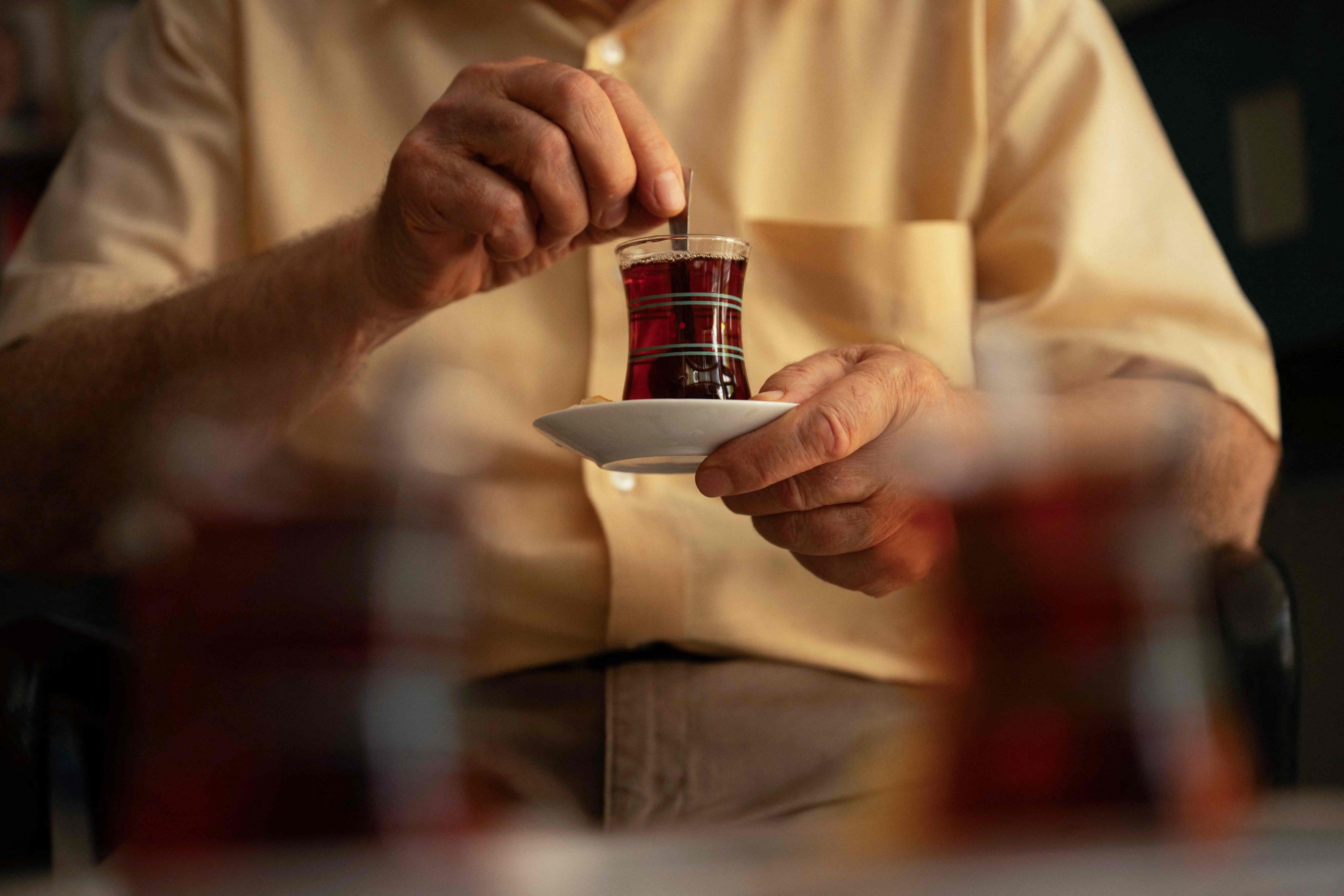 "If they offered me 100 coffees, I wouldn't take a single one," retired restaurant worker Burhan Collaku said as he savoured one of his 10 to 15 daily glasses of tea.