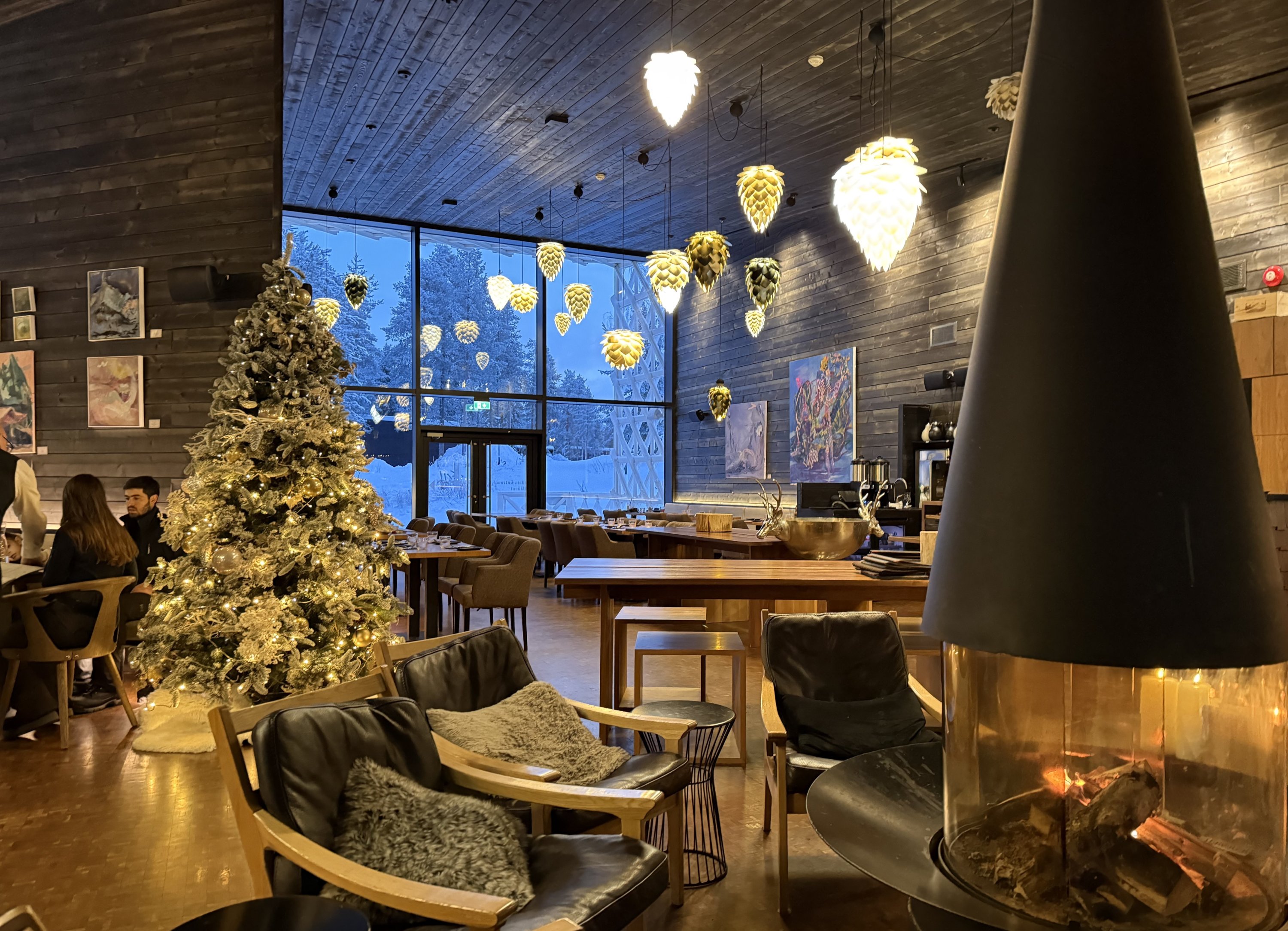 Floor-to-ceiling glass walls and ceilings draw Lapland’s ever-changing landscapes indoors, while warm wood textures and carefully considered details create a sense of calm and understated luxury.