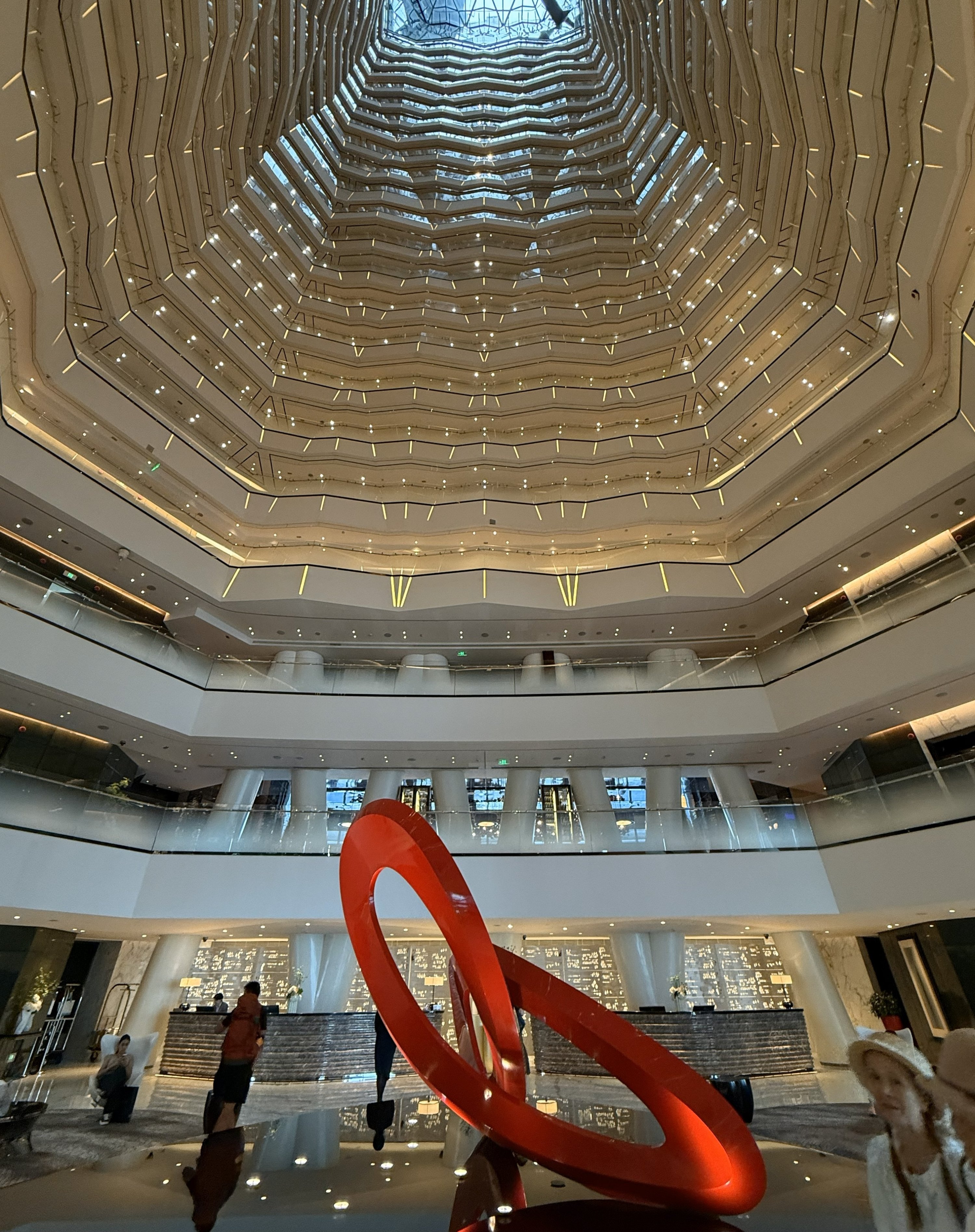 The spa, pool and fitness facilities are impressive, as are the hotel’s bars and restaurants, most notably Catch on the 100th floor, the highest restaurant in the city. Yet the most striking feature may well be the soaring central atrium, whose dramatic height leaves a lasting impression.