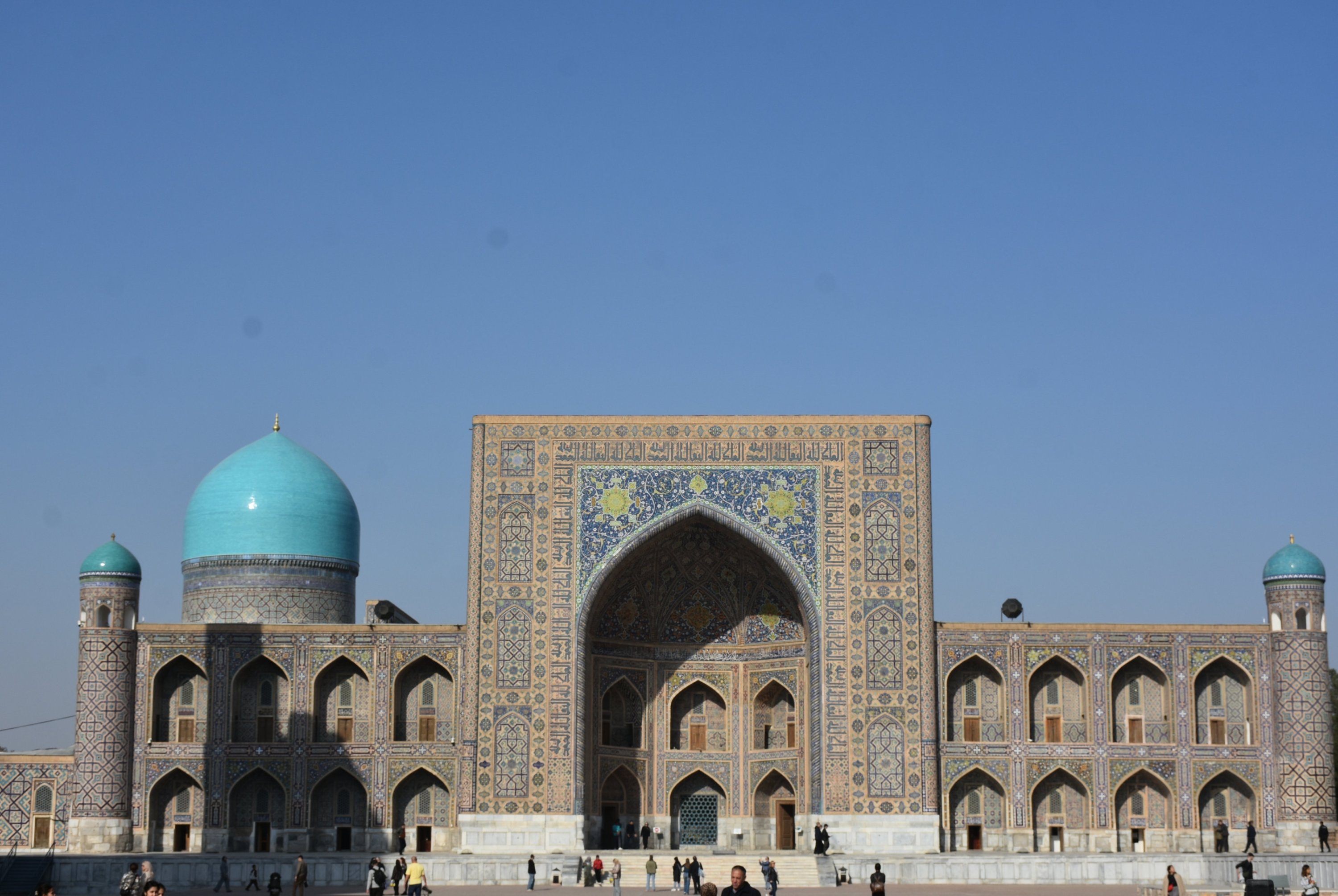 Bibi Khanum Mosque, commissioned by Timur and completed with his wife Bibi Khanum’s oversight, bears her name. Timur’s family tombs, including many of his descendants, are in Samarkand. Imam Bukhari, a prominent Islamic scholar born in Bukhara and buried in Samarkand, draws Muslim pilgrims from across the world.