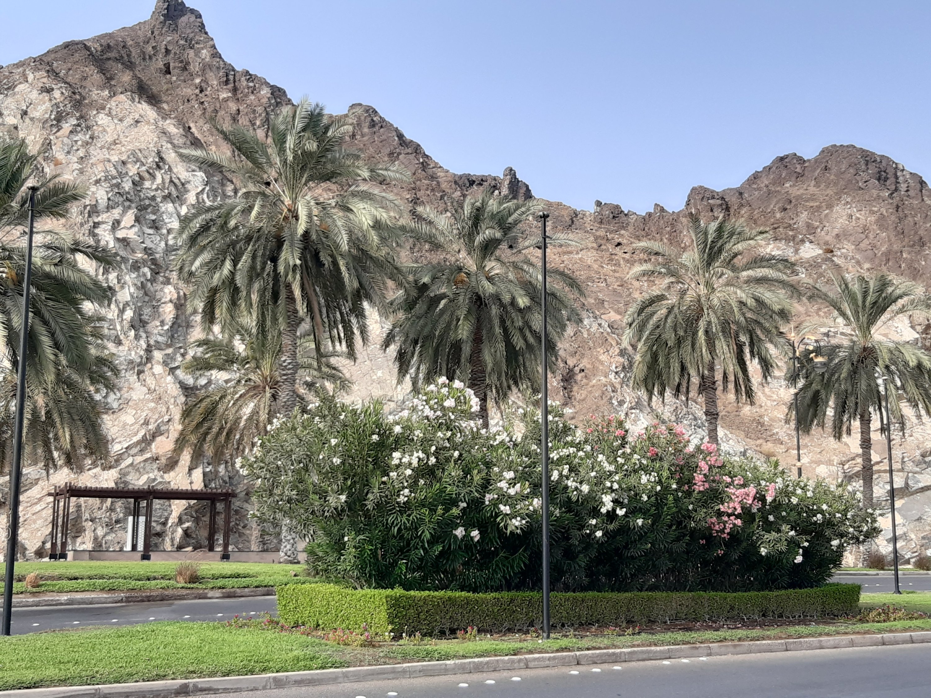 Eager to capture nature through my lens, I sat in the front seat. Knowing my inspiration to take photos, Javaid and Shazia had planned several stopovers. The long drive through the Al-Hajar mountain range – home to wheatears, warblers and nesting vultures in natural caves – presented a stunning landscape. The nearby Kalbuh Park featured various date palms, an incense burner monument, ornamental flowers, a play area, water fountains and visually pleasing arrangements.