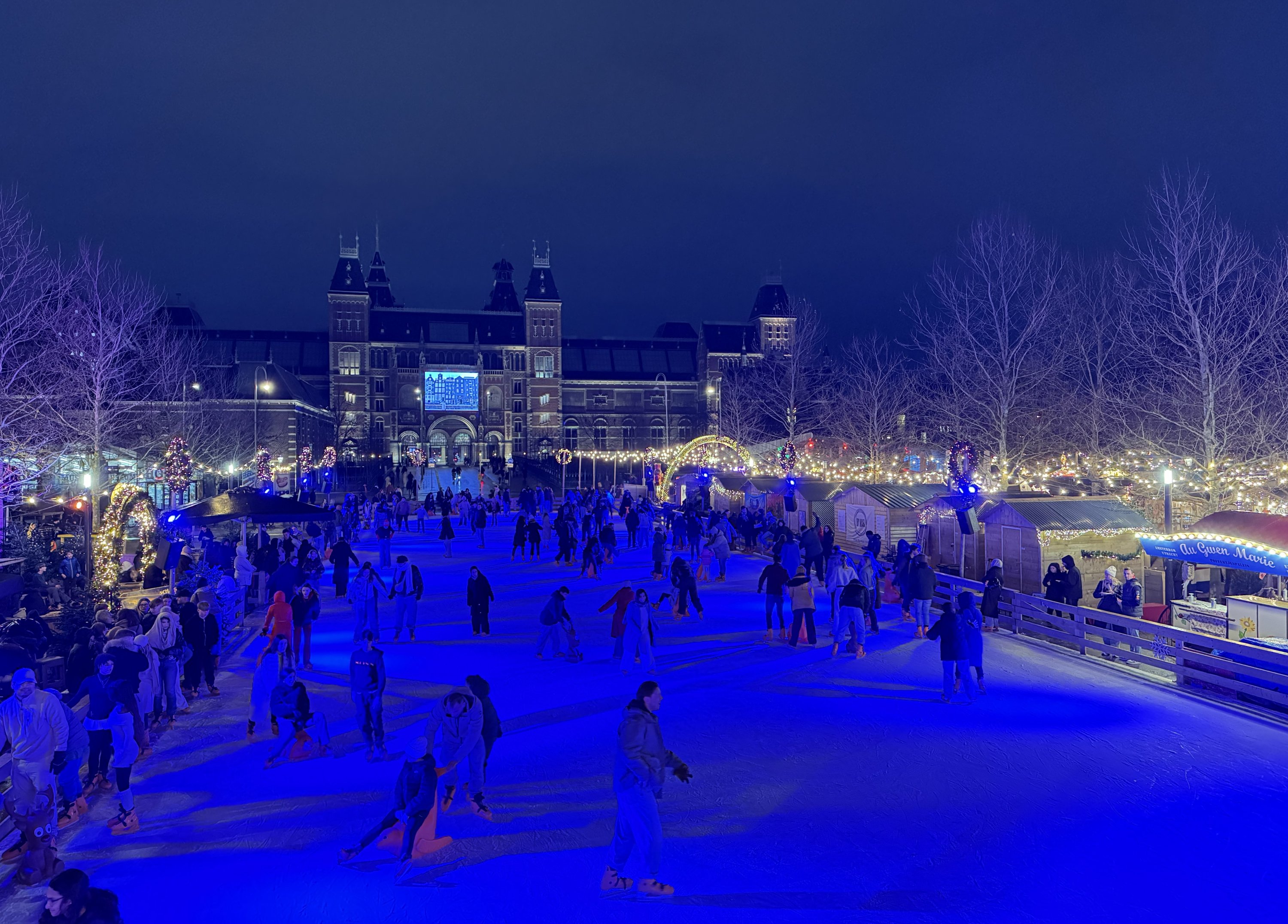 Each winter, Museumplein transforms into one of Amsterdam’s most atmospheric festive destinations, bringing together the city’s Christmas Village and its beloved seasonal ice rink. Now in its eighth year, the Christmas Village hosts more than 45 vendors offering artisanal gifts, festive snacks and steaming drinks, while roaming a cappella choirs fill the square with holiday cheer.